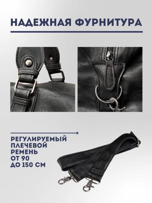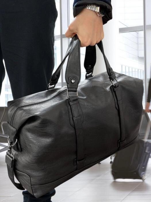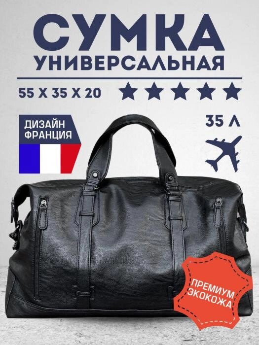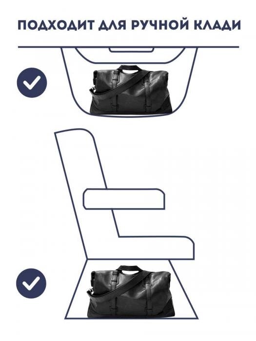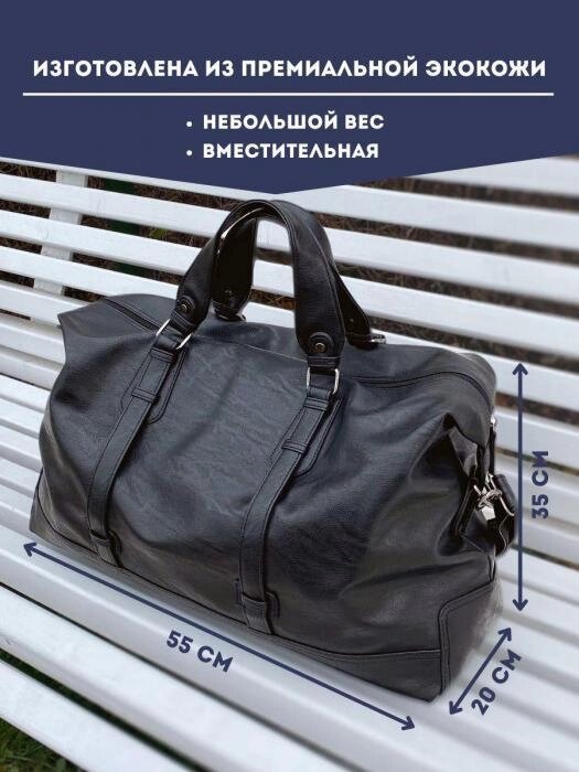 Сумка женская мужская дорожная ручная кладь в самолет кожаная большая черный саквояж