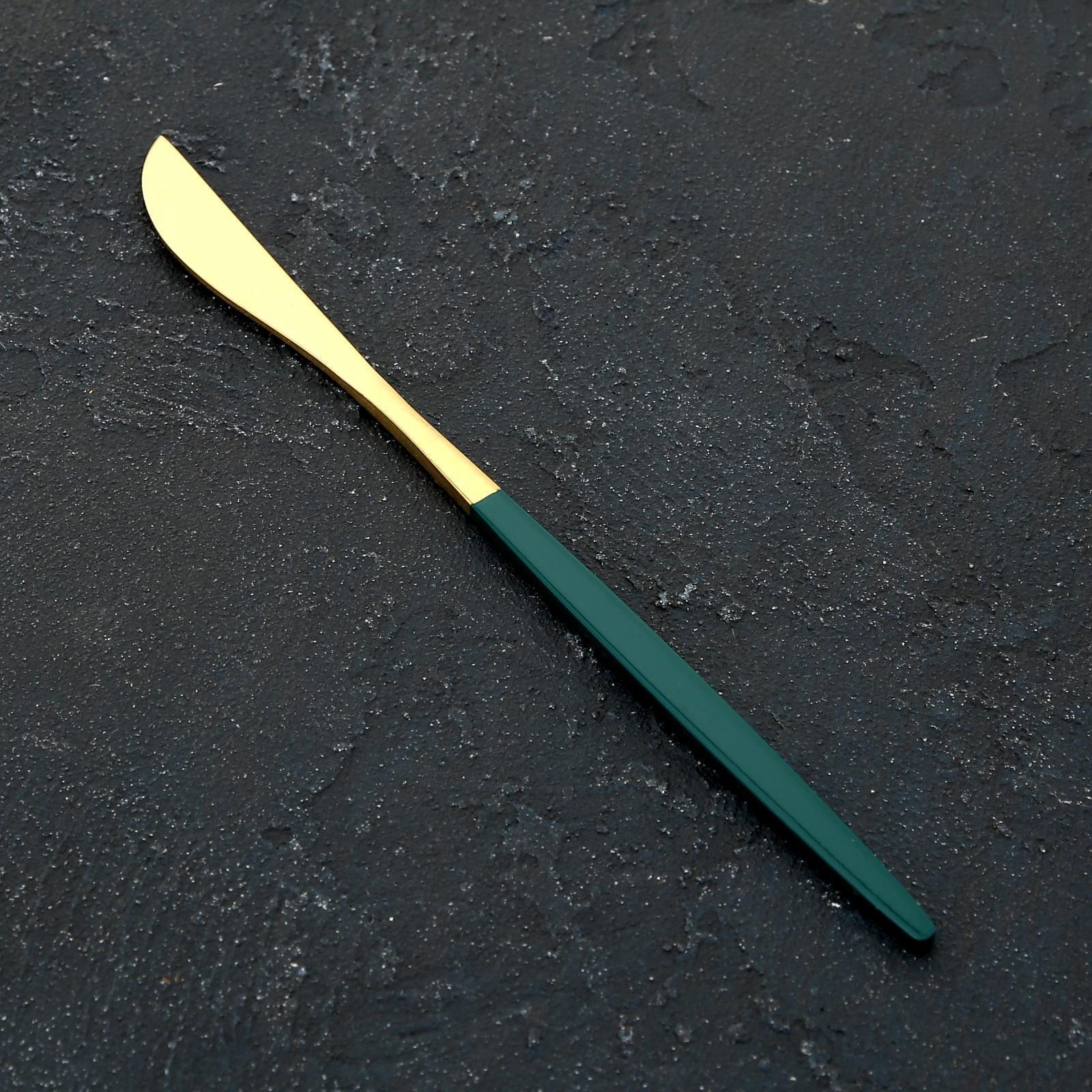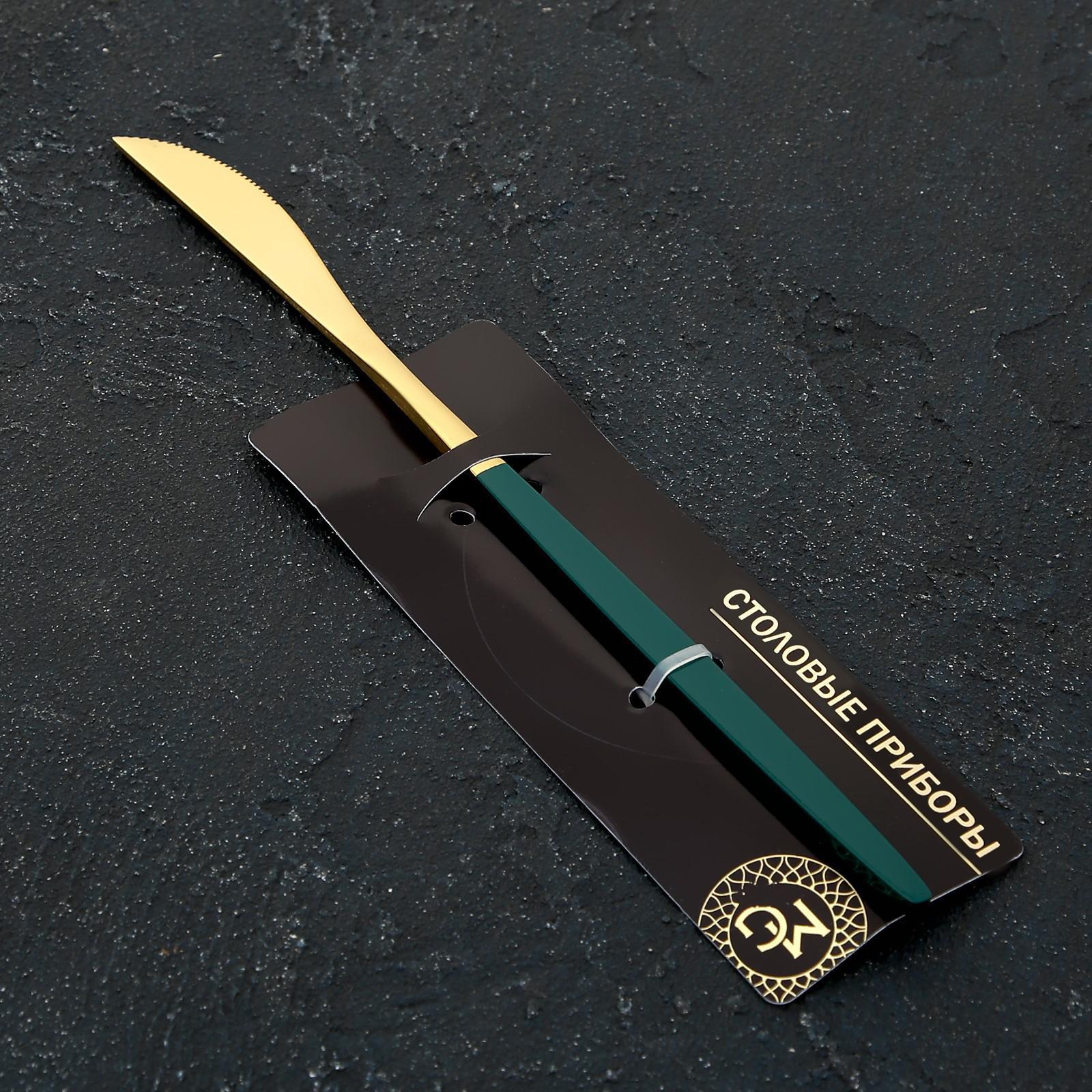 Нож столовый Magistro «Блинк», h=22 см, на подвесе, цвет металла золотой, зелёная ручка