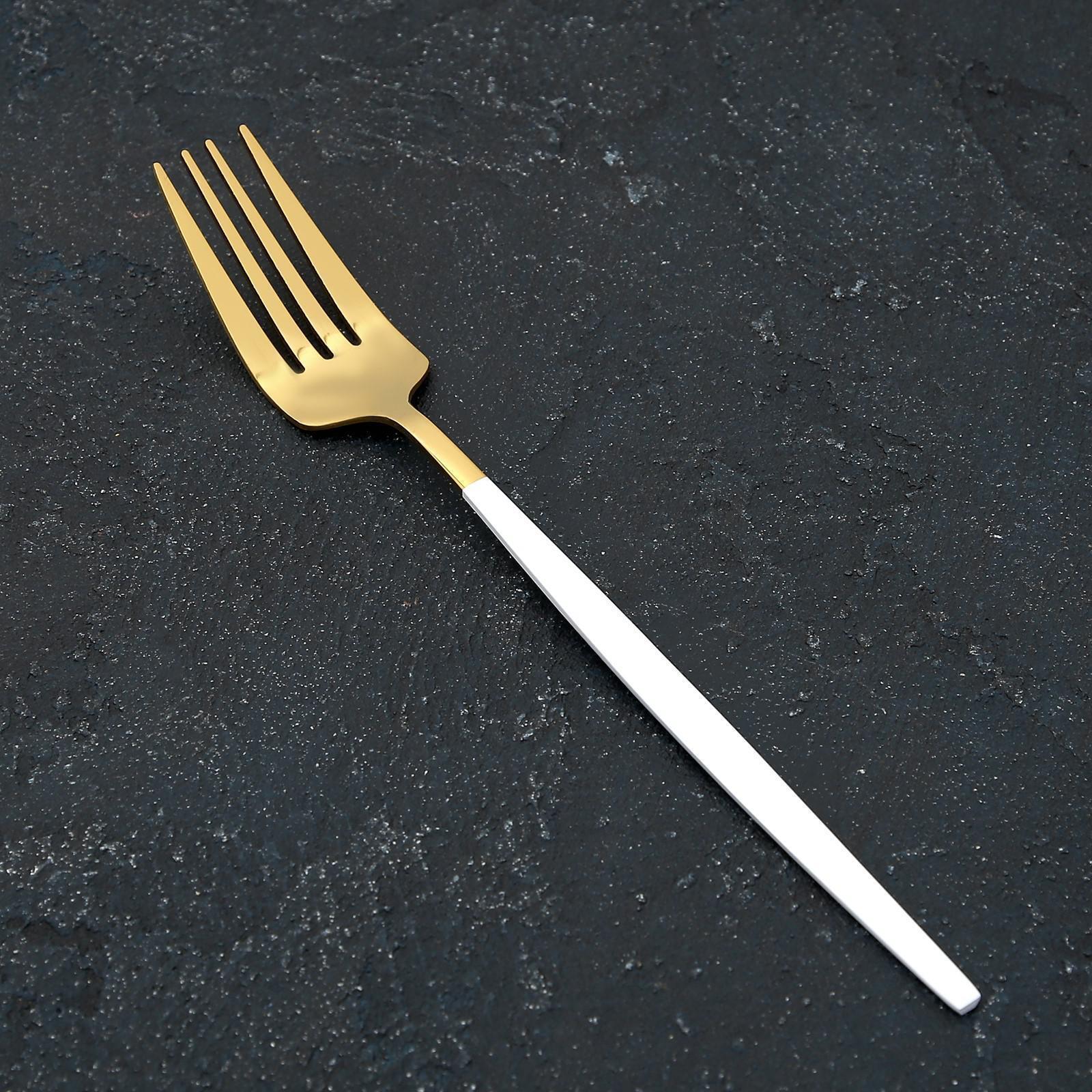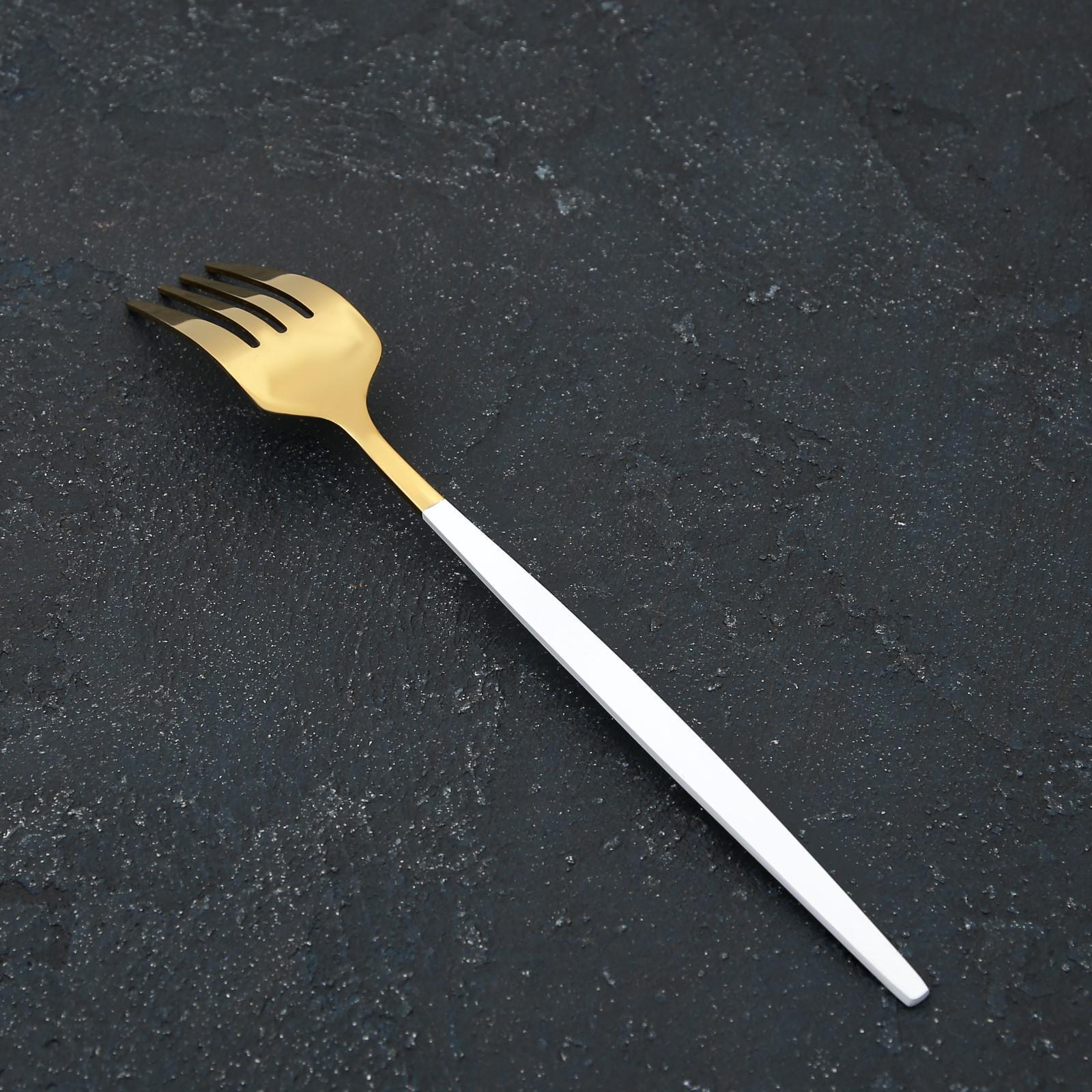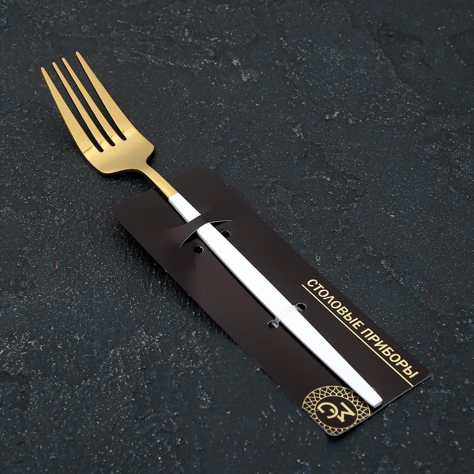 Вилка столовая Magistro «Блинк», 21,5×3 см, на подвесе, белая ручка, цвет золотой