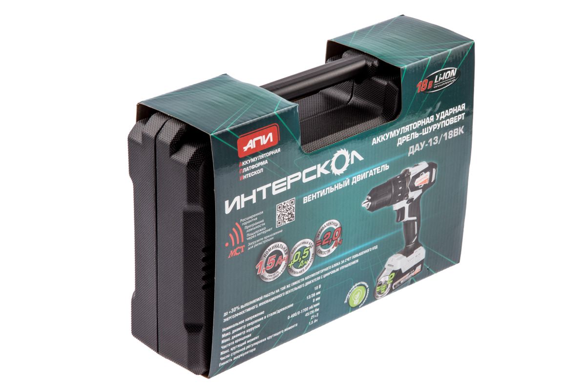 Акк. удар. дрель-шуруп. ИНТЕРСКОЛ ДАУ-13/18ВК (573.1.2.70) Li-ion АПИ кейс, 2 аккум 1.5Ач, ЗУ ПРОМ