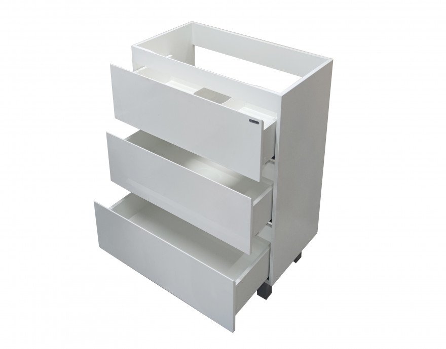Современный дизайн серии Bali создан для ценителей минимализма. Четкие геометрические формы, бесшумное закрывание ящиков, вместительная тумба с верхним и нижним ящиками создает дополнительное пространство, где будут надежно скрыты от влаги банные принадлежности.