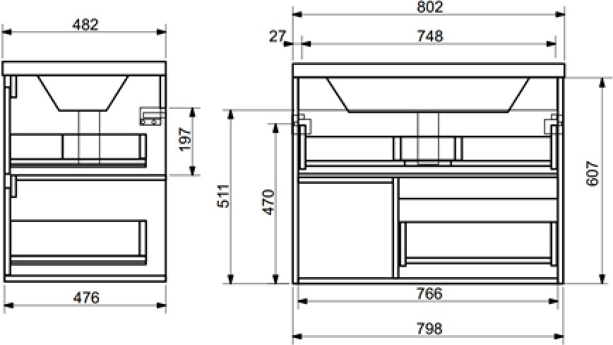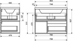 тумба подвесная с умывальником эстет monaco wood 800 (2 ящика)