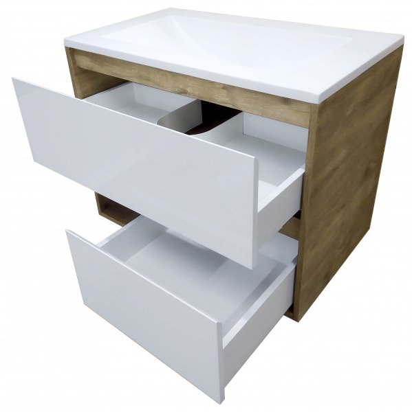 Тумба подвесная с умывальником Эстет Monaco Wood 800 (2 ящика)