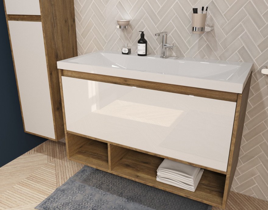 Тумба подвесная с умывальником Эстет Monaco Wood 1000 (1 ящик)