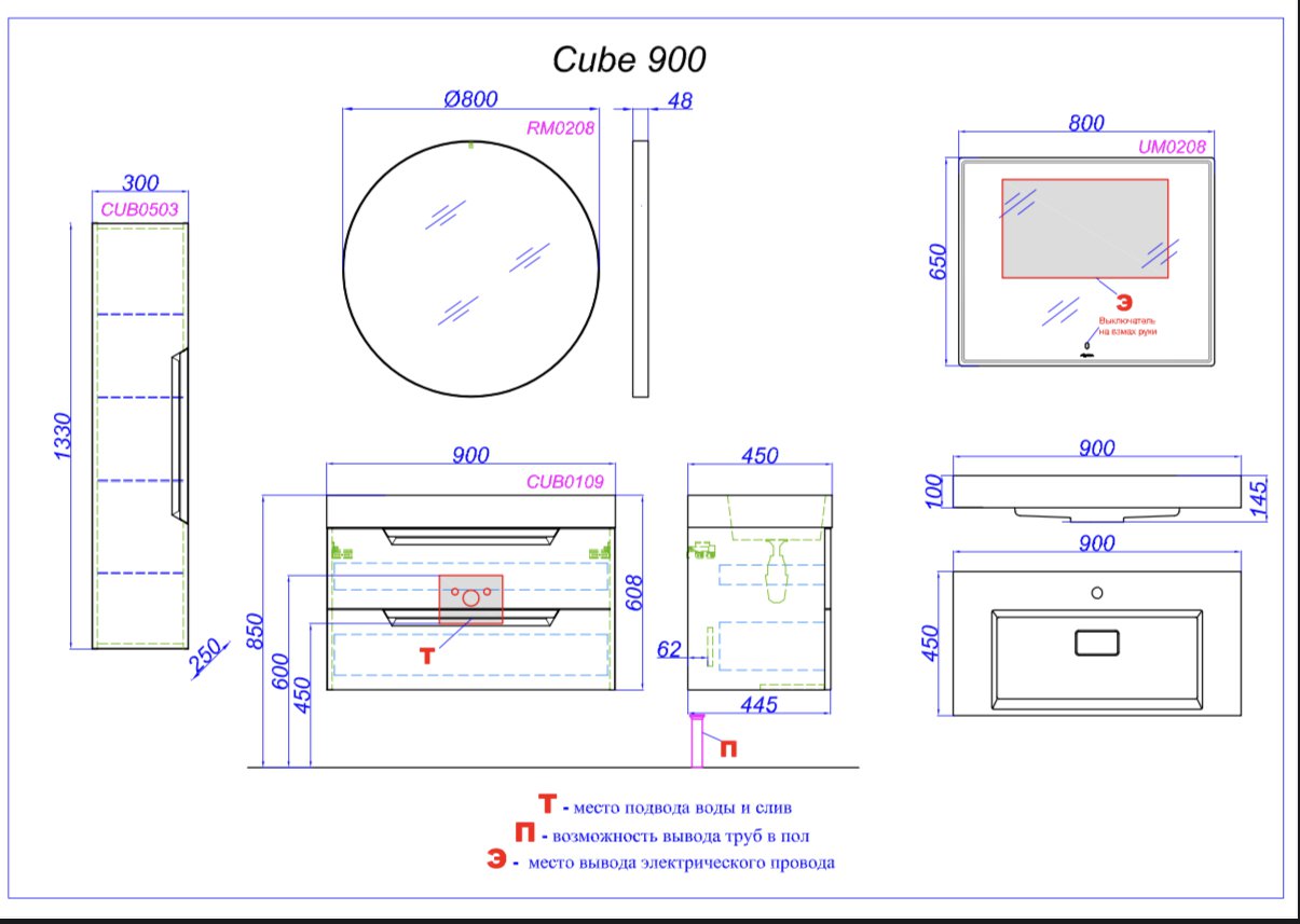 тумба aqwella cube 90 с умывальником toledo