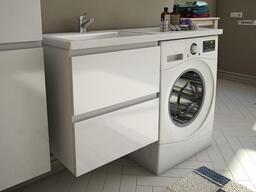Коллекция мебели для ванной комнаты Dallas Luxe покоряет своей удивительной простой и функциональностью. Стильная лаконичная тумба, укомплектована раковиной из литьевого мрамора с удобной чашей. Стиральная машина устанавливается под столешницей, за счет чего экономит место в ванной комнате. В тумбе имеются два ящика. Нижний ящик тумбы – широкий и вместительный – предназначен для крупных предметов, а в верхнем имеется специальная организация пространства, позволяющая хранить мелкие вещи.