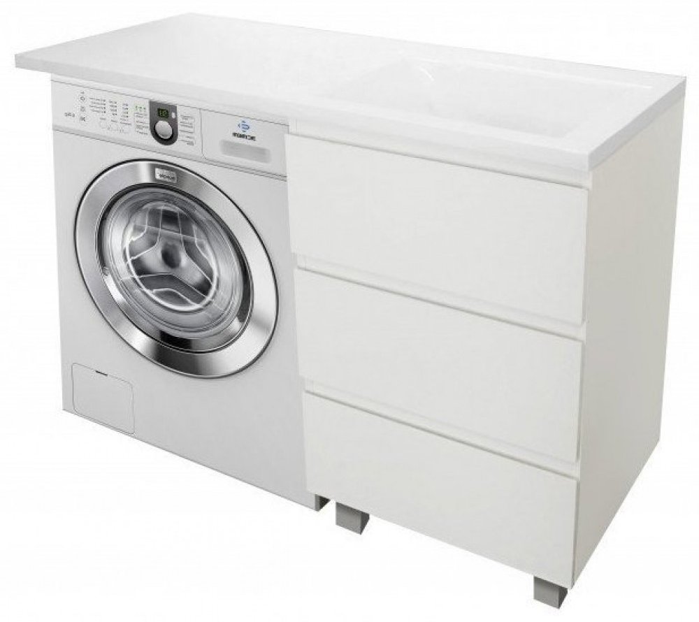 Приоритетом в выборе тумбы с раковиной является площадь ванной комнаты. Функциональная тумба с тремя ящиками решит вопрос для большинства покупателей. Тумба укомплектована раковиной из литьевого мрамора с удобной чашей, стиральная машина устанавливается под столешницей. Три ящика позволят распределить как крупные, так и мелкие вещи.