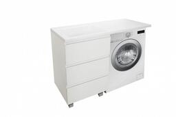 Приоритетом в выборе тумбы с раковиной является площадь ванной комнаты. Функциональная тумба с тремя ящиками решит вопрос для большинства покупателей. Тумба укомплектована раковиной из литьевого мрамора с удобной чашей, стиральная машина устанавливается под столешницей. Три ящика позволят распределить как крупные, так и мелкие вещи.