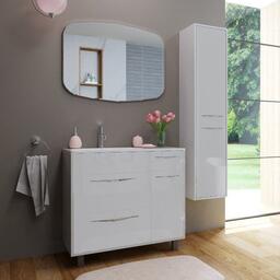 КОМФОРТ. Ящики снабжены системной плавного закрывания. Тумбы, пеналы и шкафчики разработаны для удобного хранения ванных принадлежностей. Зеркала и мебель имеют размерный ряд.