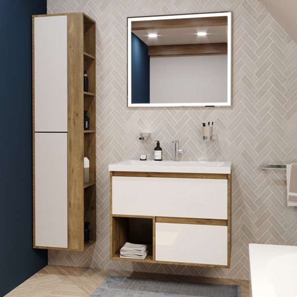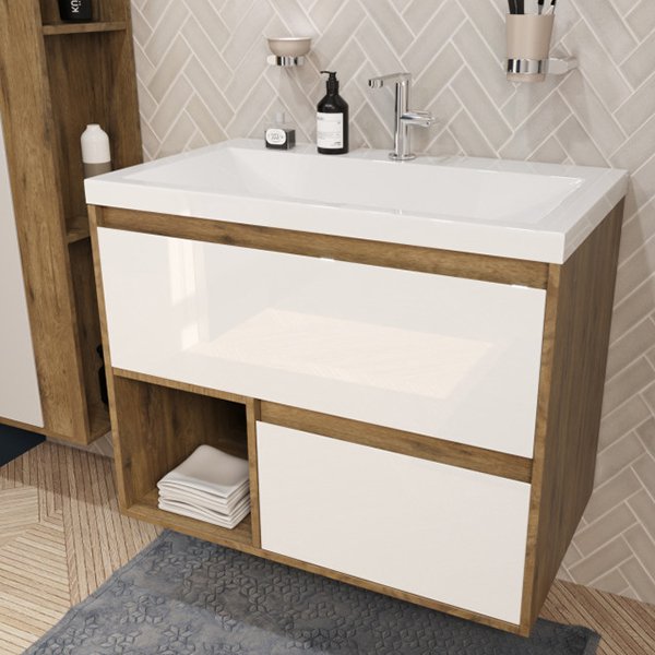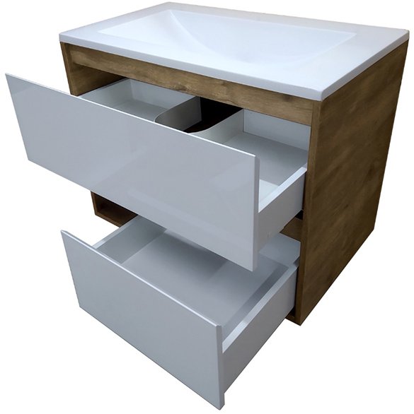 Тумба подвесная с умывальником Эстет Monaco Wood 900 (2 ящика)