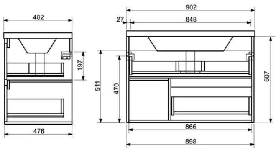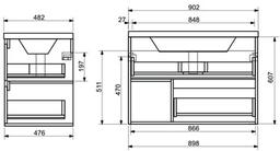 тумба подвесная с умывальником эстет monaco wood 900 (2 ящика)