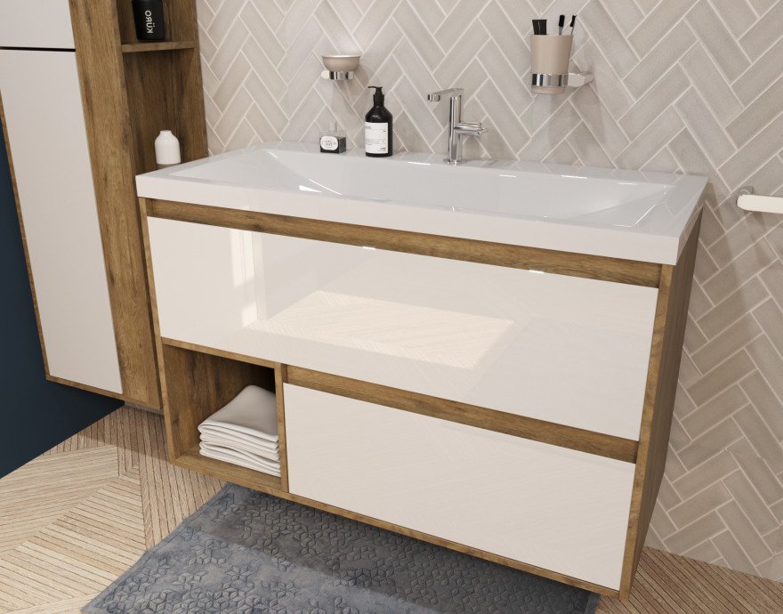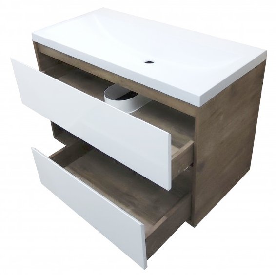 Тумба подвесная с умывальником Эстет Monaco Wood 1000 (2 ящика)