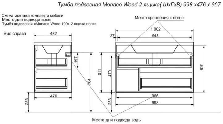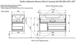 тумба подвесная с умывальником эстет monaco wood 1000 (2 ящика)