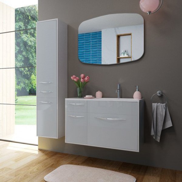 Коллекция Barcelona выполнена в стиле модерн. Плавные линии и формы подчеркивают элегантность комплекта, а разнообразие комплектации позволяет использовать мебель в качестве маркера вашего собственного стиля. За счет раковины с крылом коллекция Barcelona более вместительная и удобная. В подвесной тумбе 2 ящика: большой со скрытым хранением (дополнительный выдвижной ящик) и маленький предполагает хранение различных аксессуаров, а также секция с распашной дверцей где можно разместить бытовую химию.