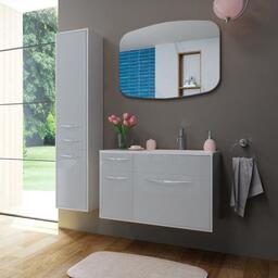 КОМФОРТ. Ящики снабжены системной плавного закрывания. Тумбы, пеналы и шкафчики разработаны для удобного хранения ванных принадлежностей. Зеркала и мебель имеют размерный ряд.