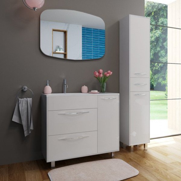 Коллекция Barcelona выполнена в стиле модерн. Плавные линии и формы подчеркивают элегантность комплекта, а разнообразие комплектации позволяет использовать мебель в качестве маркера вашего собственного стиля. За счет раковины с крылом коллекция Barcelona более вместительная и удобная. В напольной тумбе располагаются 2 ящика и дополнительное пространство с распашной дверцей. Два ящика предполагают размещение бытовых принадлежностей, а в секции с дверцей можно разместить бельевую корзину.