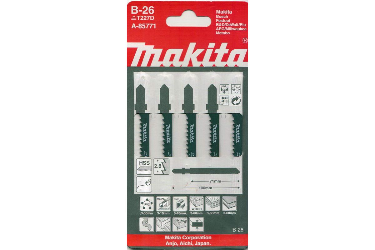 Пилка для лобзика MAKITA A-85771 B-26 алюм\пластик, по кривой, 100мм, шаг 2.8, HSS, 5шт.