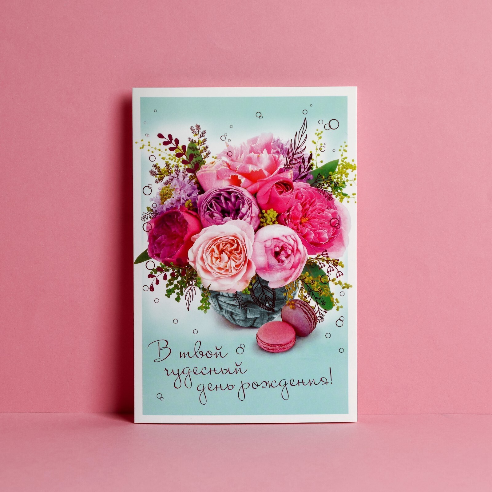 Открытка «В твой День Рождения», пионы, 12 × 18 см