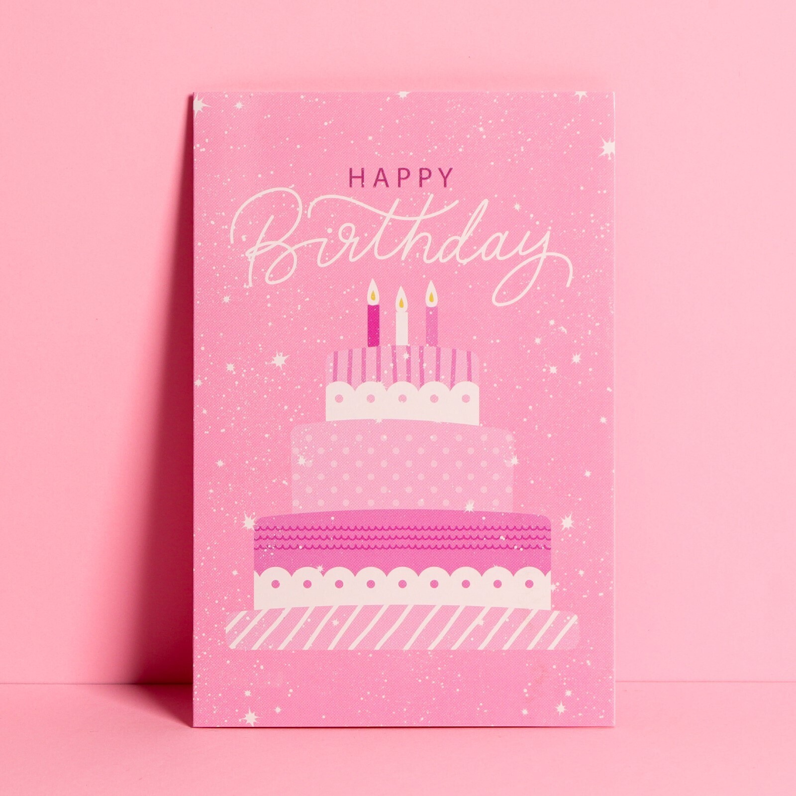 Открытка средняя «День Рождения», торт, 12 × 18 см
