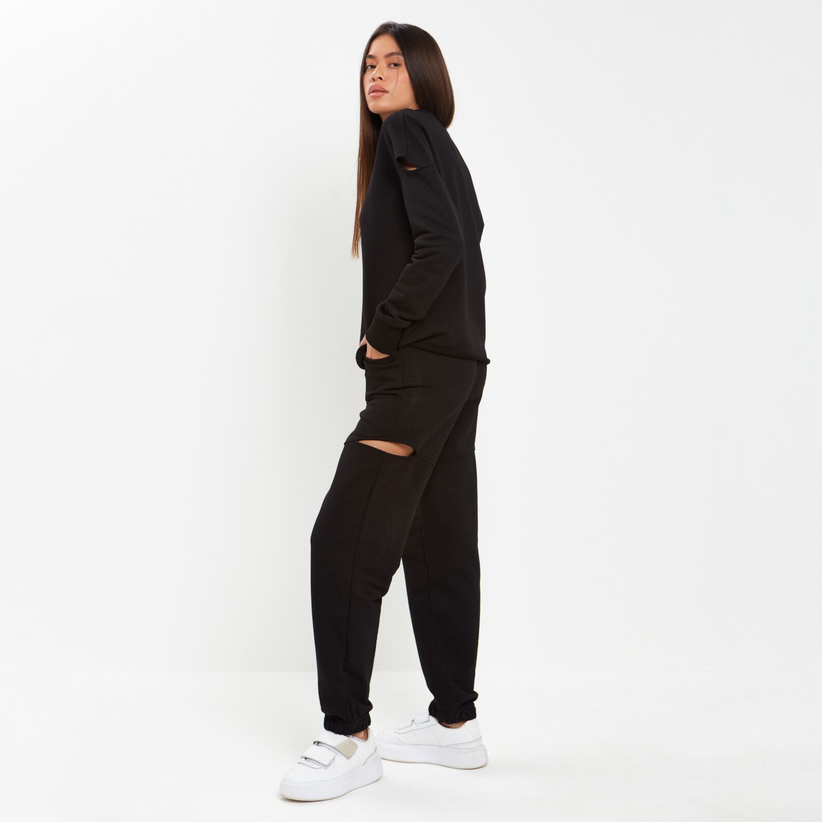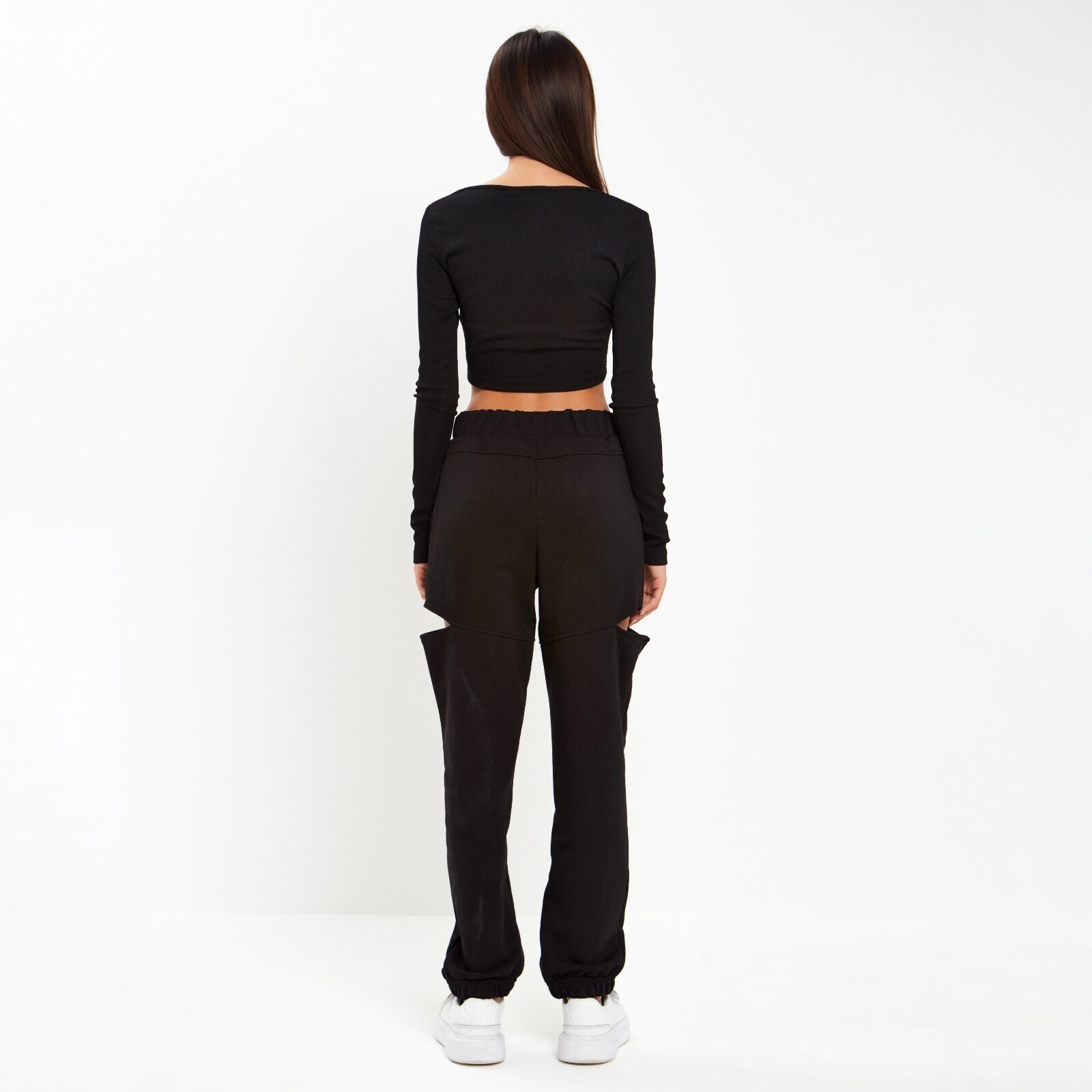 Брюки (джоггеры) женские с разрезами MIST р. 42 (рост 165), чёрный