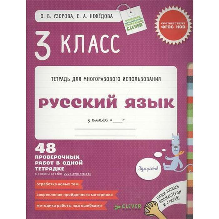 Тетрадь для многоразового использования «Русский язык. 3 класс. 48 проверочных работ в одной тетрадке» ориентирована на детей 8-10 лет, учащихся в третьем классе. В данное пособие включены именно те слова и задания, которые всегда встречаются в контрольных работах, мониторингах и проверочных текстах по русскому языку в 3 классе.. Удобная подача материала позволит вам экономить драгоценное время, как на уроке, так и при проверке задания. Тетрадка станет для вас незаменимым помощником на весь учебный год – в ней дети могут писать и стирать написанное, что даст вам возможность возвращаться к одному и тому же материалу столько раз, сколько нужно: сначала при разборе нового материала, а затем для закрепления – в течение всего учебного года. И вы добьетесь 100% грамотности!