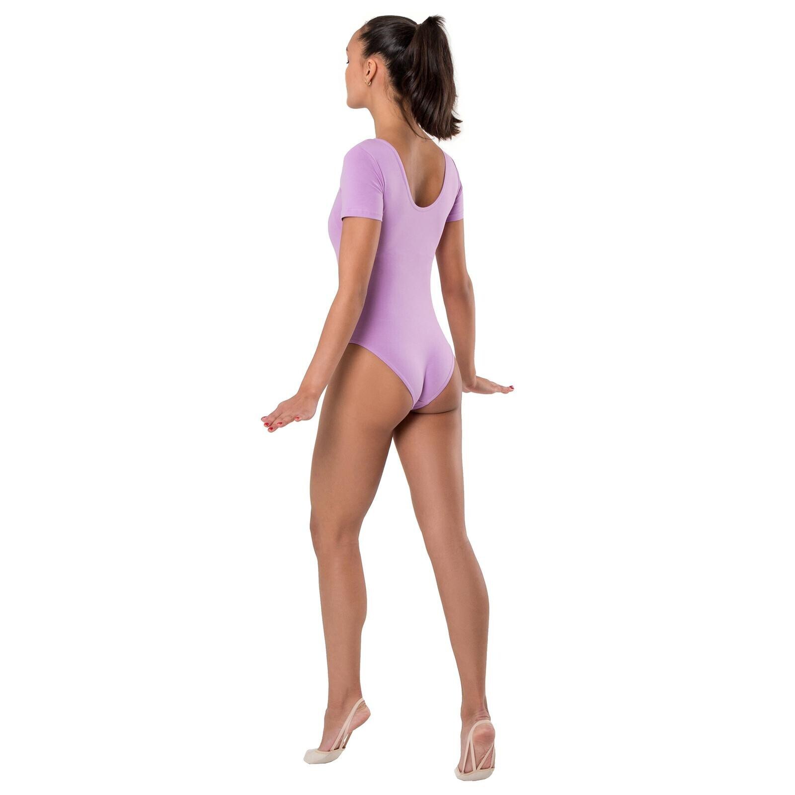 Купальник гимнастический х/б, короткий рукав, цвет фиалковый, размер 42
