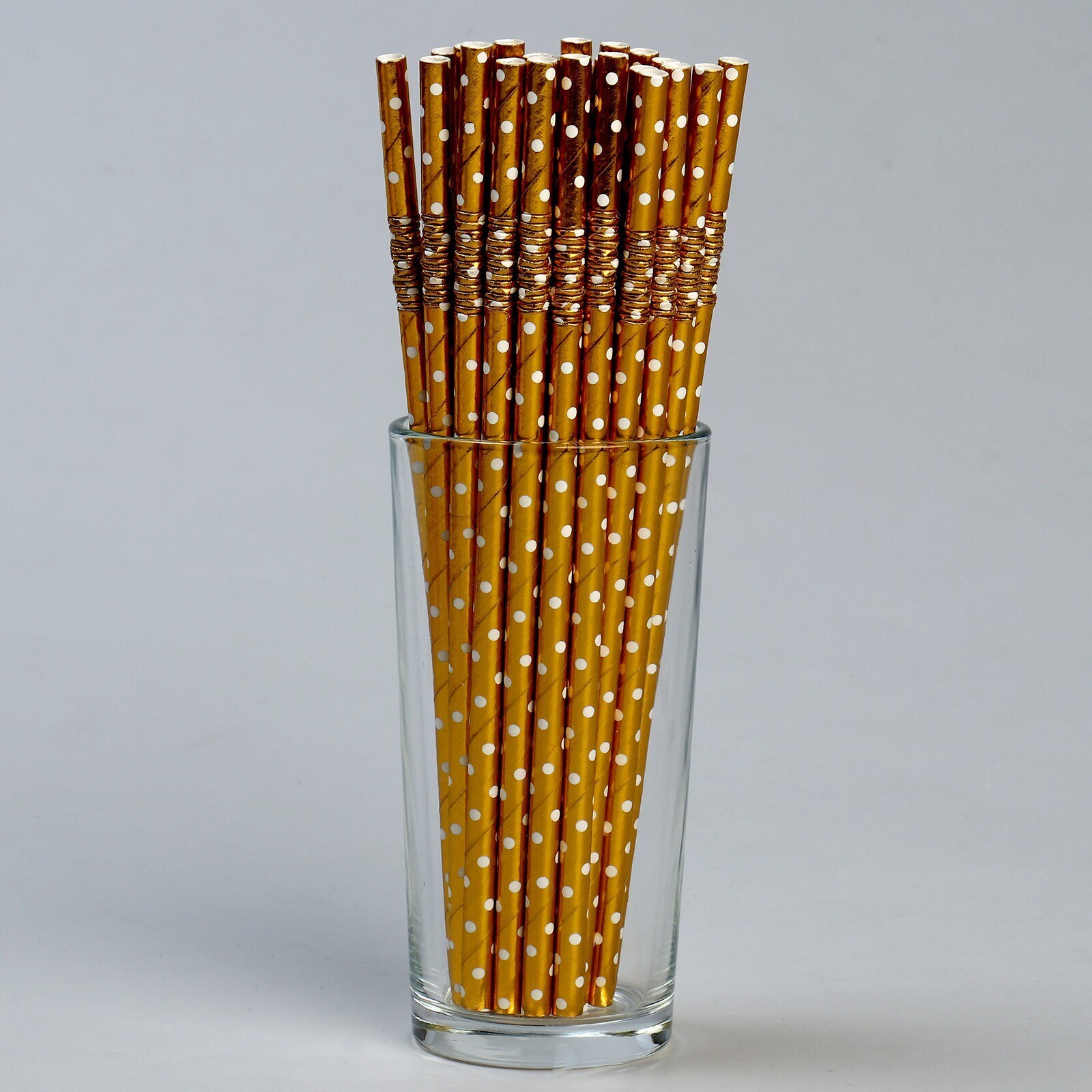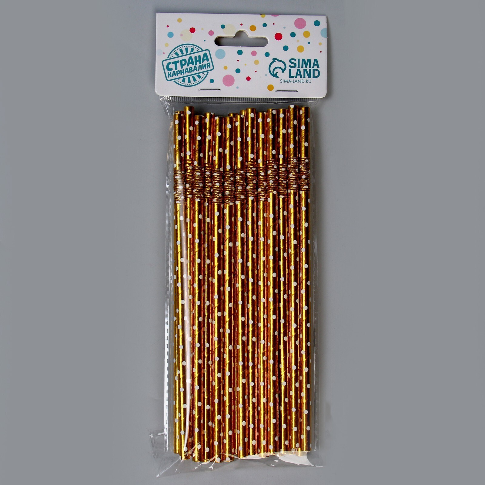 Трубочки для коктейля с гофрой «Горох», в наборе 25 штук, цвет золотой
