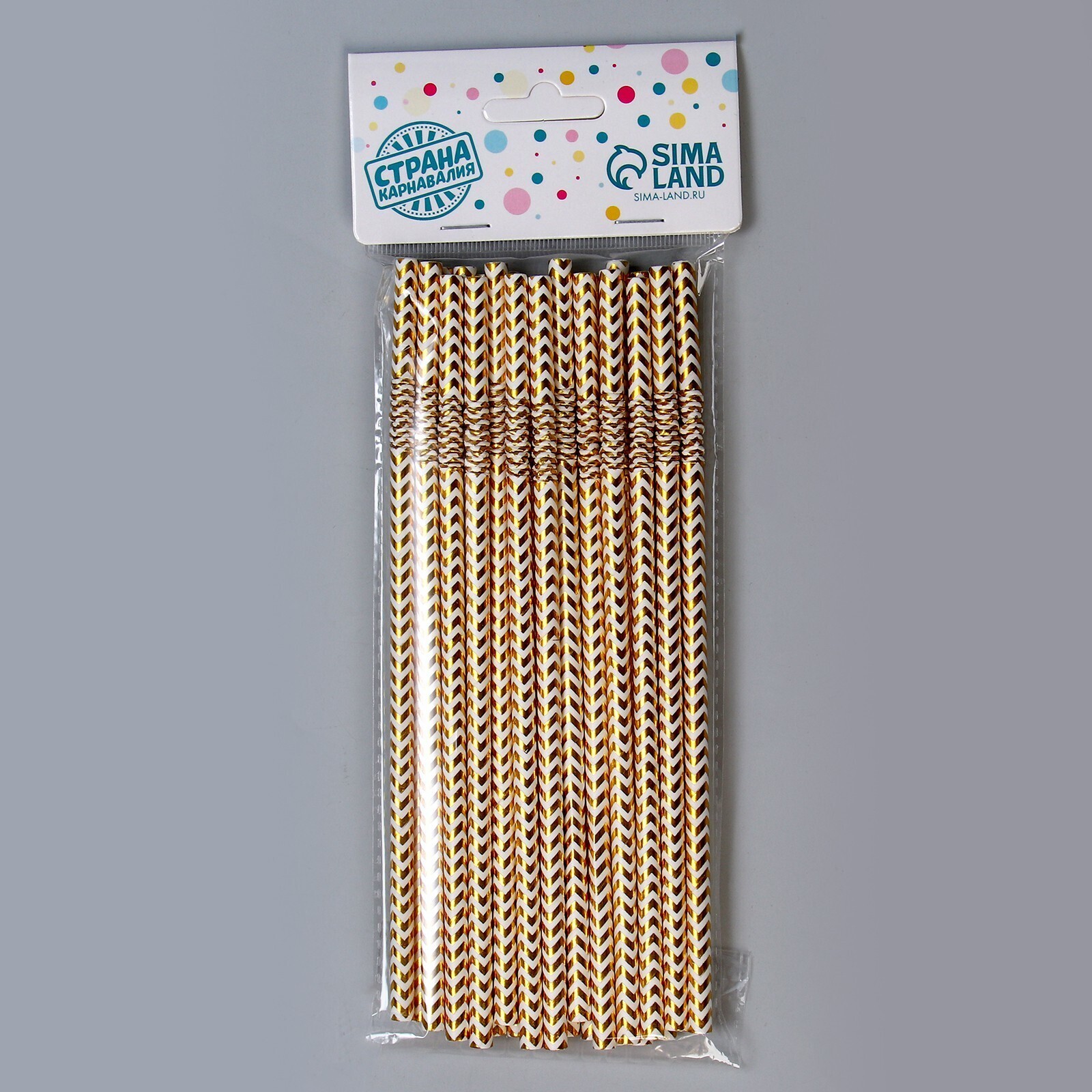 Трубочки для коктейля с гофрой «Зигзаг», в наборе 25 штук, цвет золотой