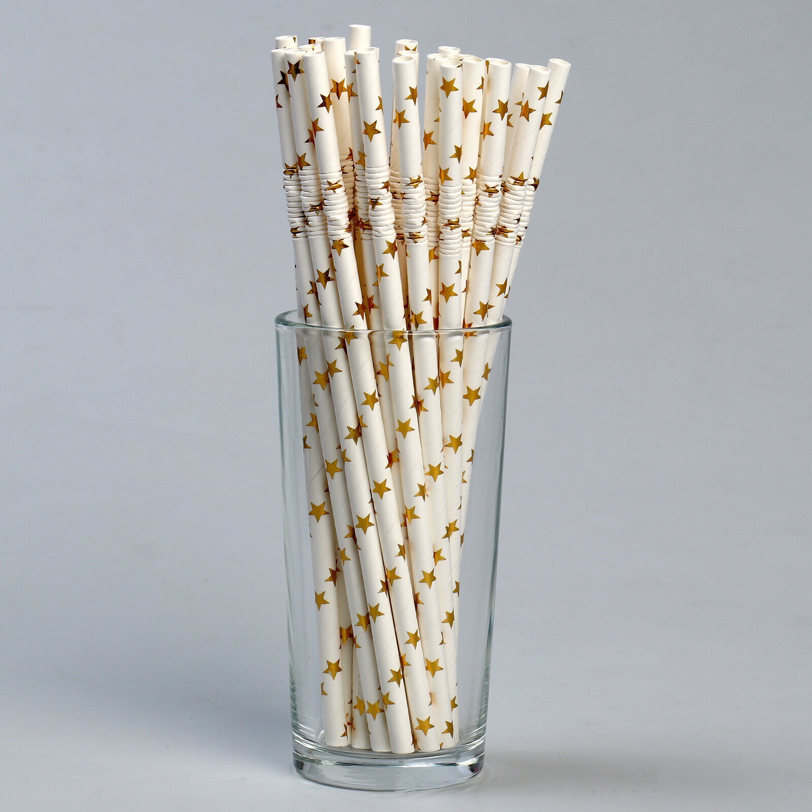 Трубочки для коктейля с гофрой «Звёзды», в наборе 25 штук, цвет золотой