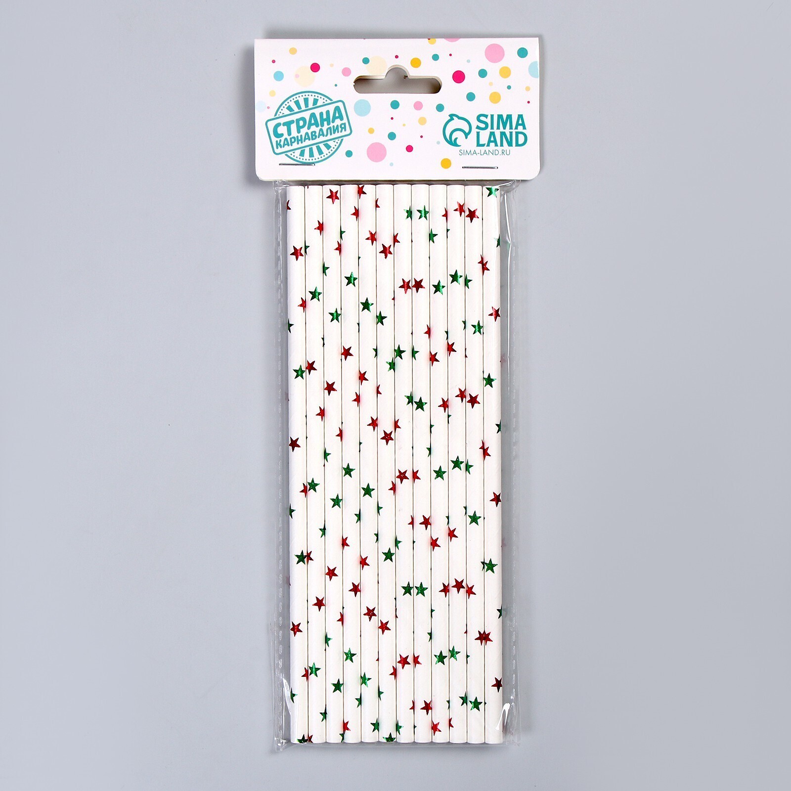 Трубочки для коктейля «Цветные звёзды», тиснение, набор 12 шт.