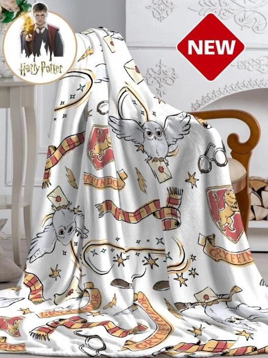 Плед 100х150 Гарри Поттер подарок пушистый детский плюшевый теплый большой мягкий белый
