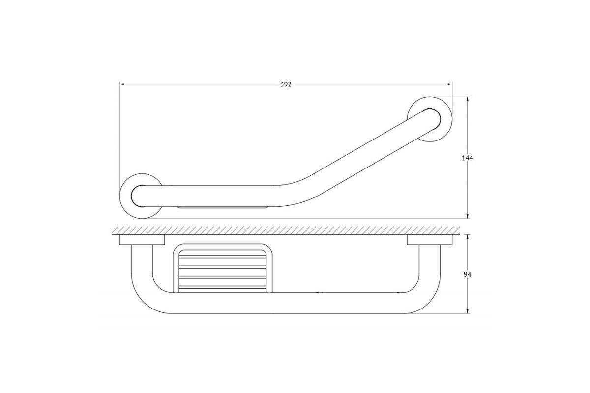 Для большей функциональности с одной из сторон поручня установлена полочка для мыла или мочалки.