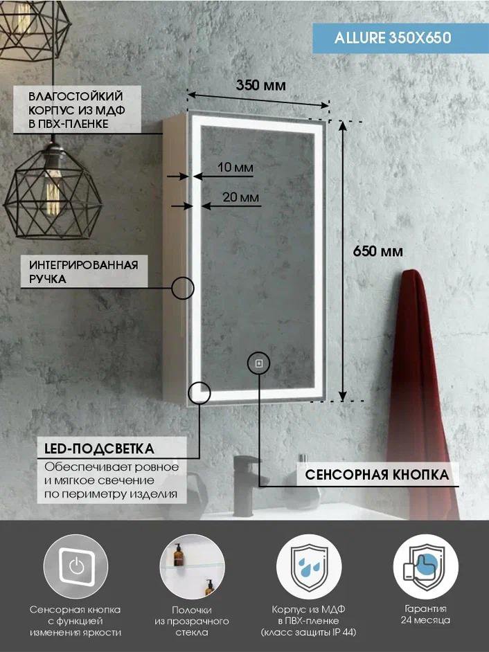Шкаф с зеркалом Континент Allure LED 35x65 с подсветкой и датчиком движения с подсветкой и датчиком движения правый