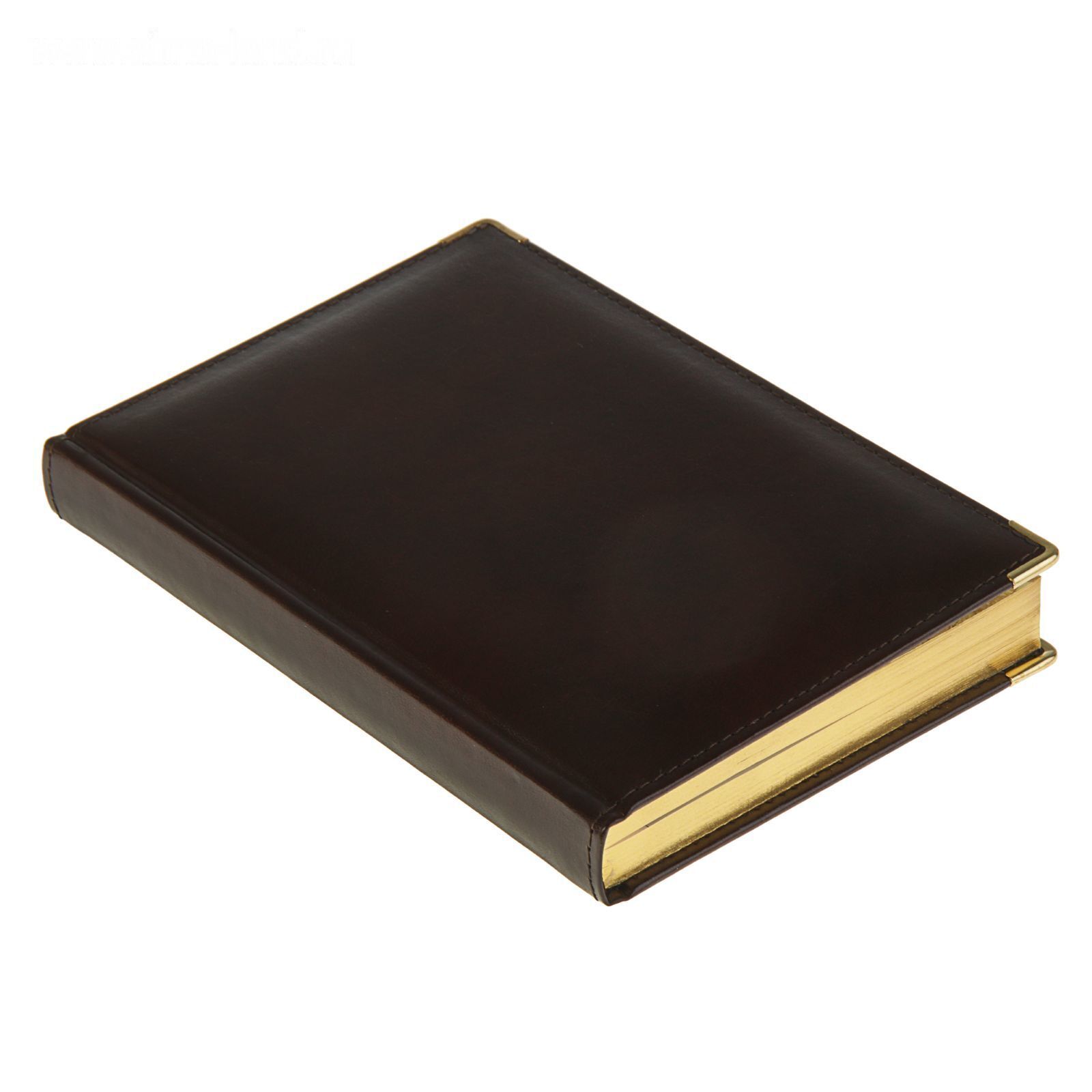 Ежедневник полудатированный А5, 208 листов Imperium, рециклированная кожа, золотой срез, 2 ляссе, коричневый