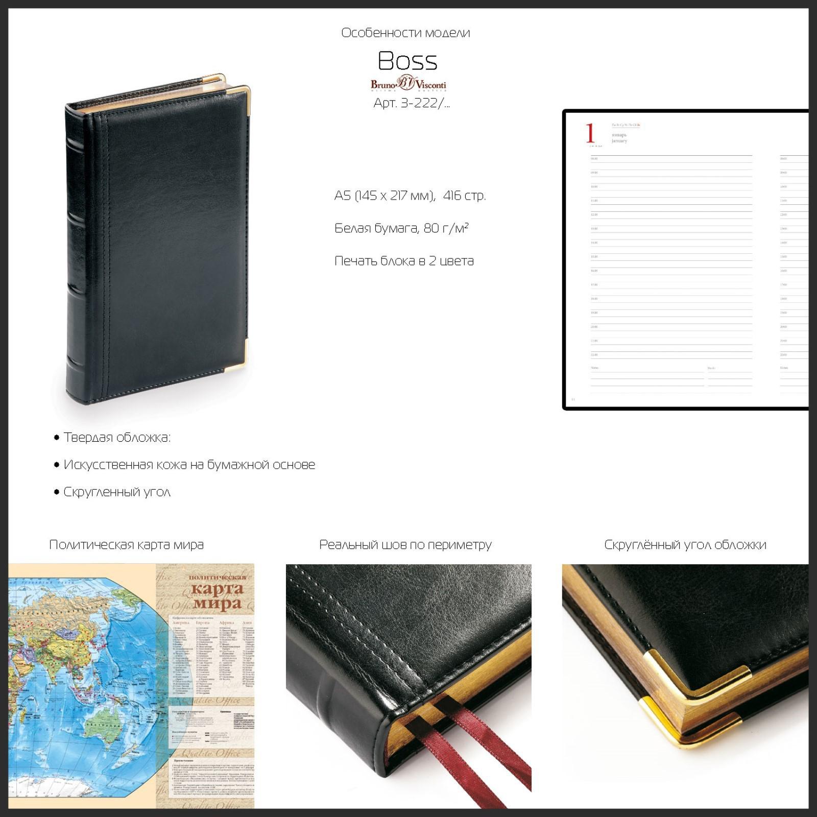 Ежедневник полудатированный А5+, 208 листов Boss, твёрдая обложка, искусственная кожа, серебряный срез, серый