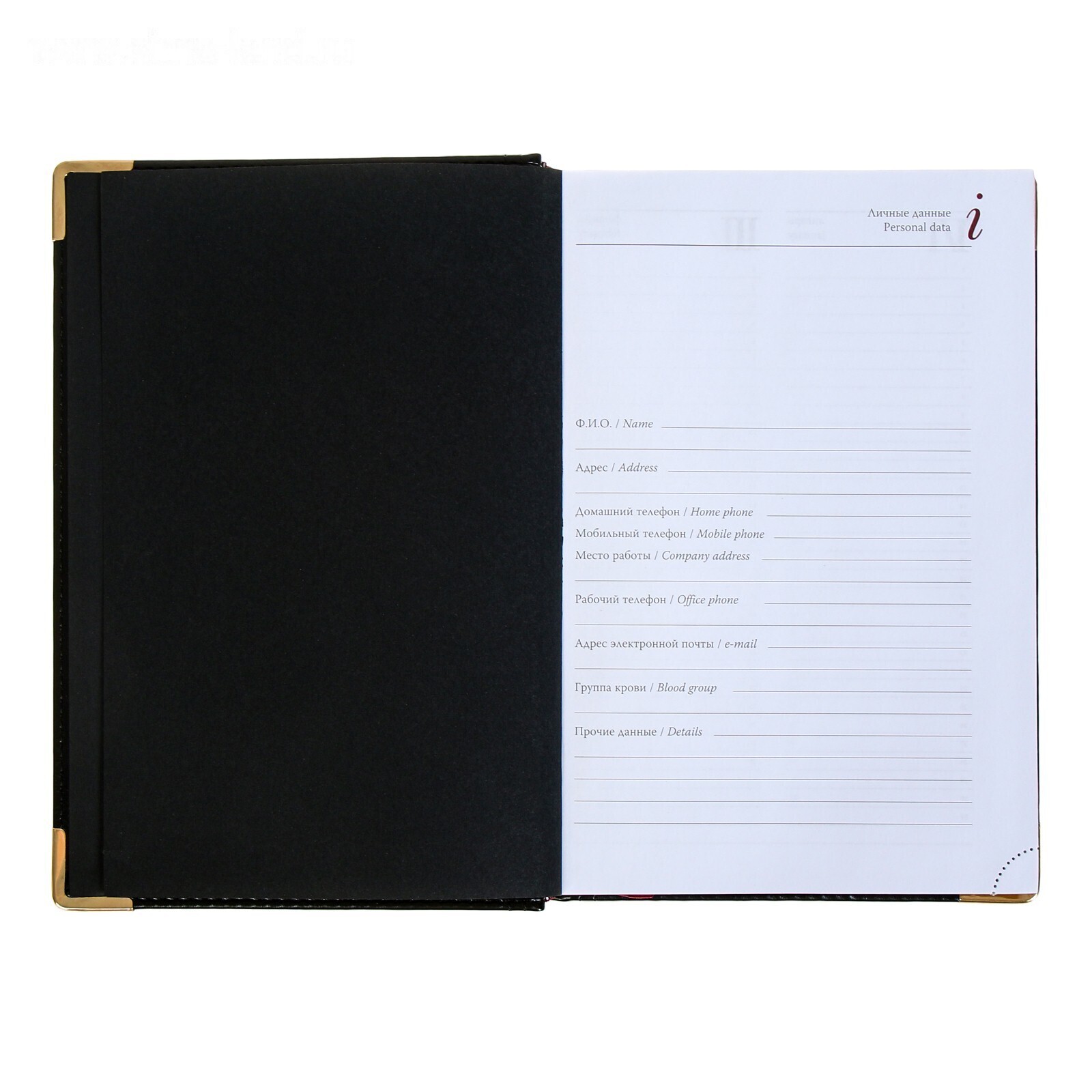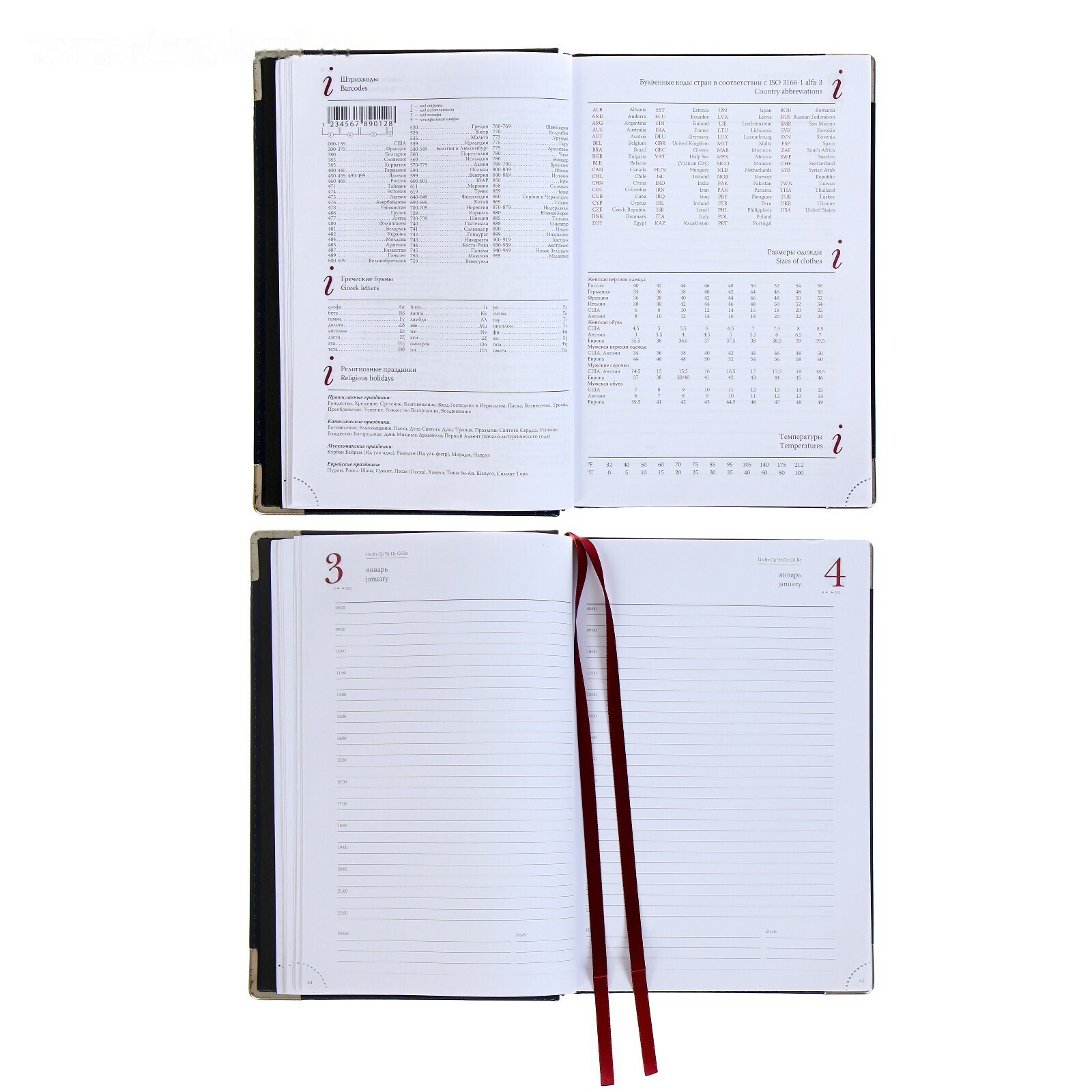 Ежедневник полудатированный А5+, 208 листов Boss, твёрдая обложка, искусственная кожа, золотой срез, чёрный