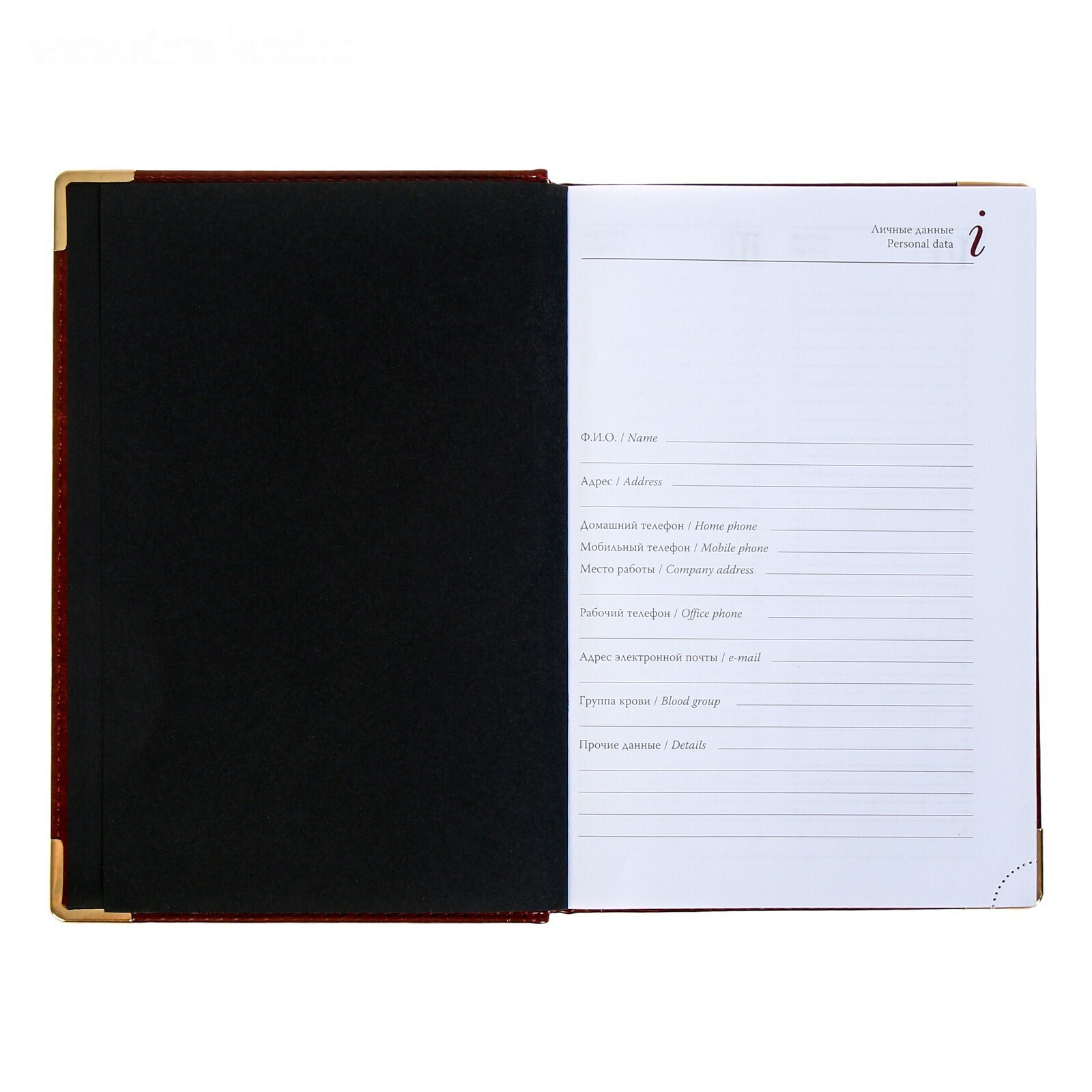 Ежедневник полудатированный А5+, 208 листов Boss, твёрдая обложка, искусственная кожа, золотой срез, коричневый