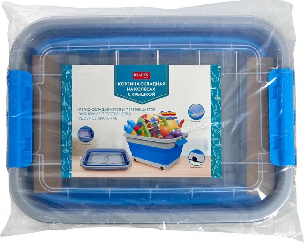 Корзина складная на колесах с крышкой 30 л, синий TD 0637