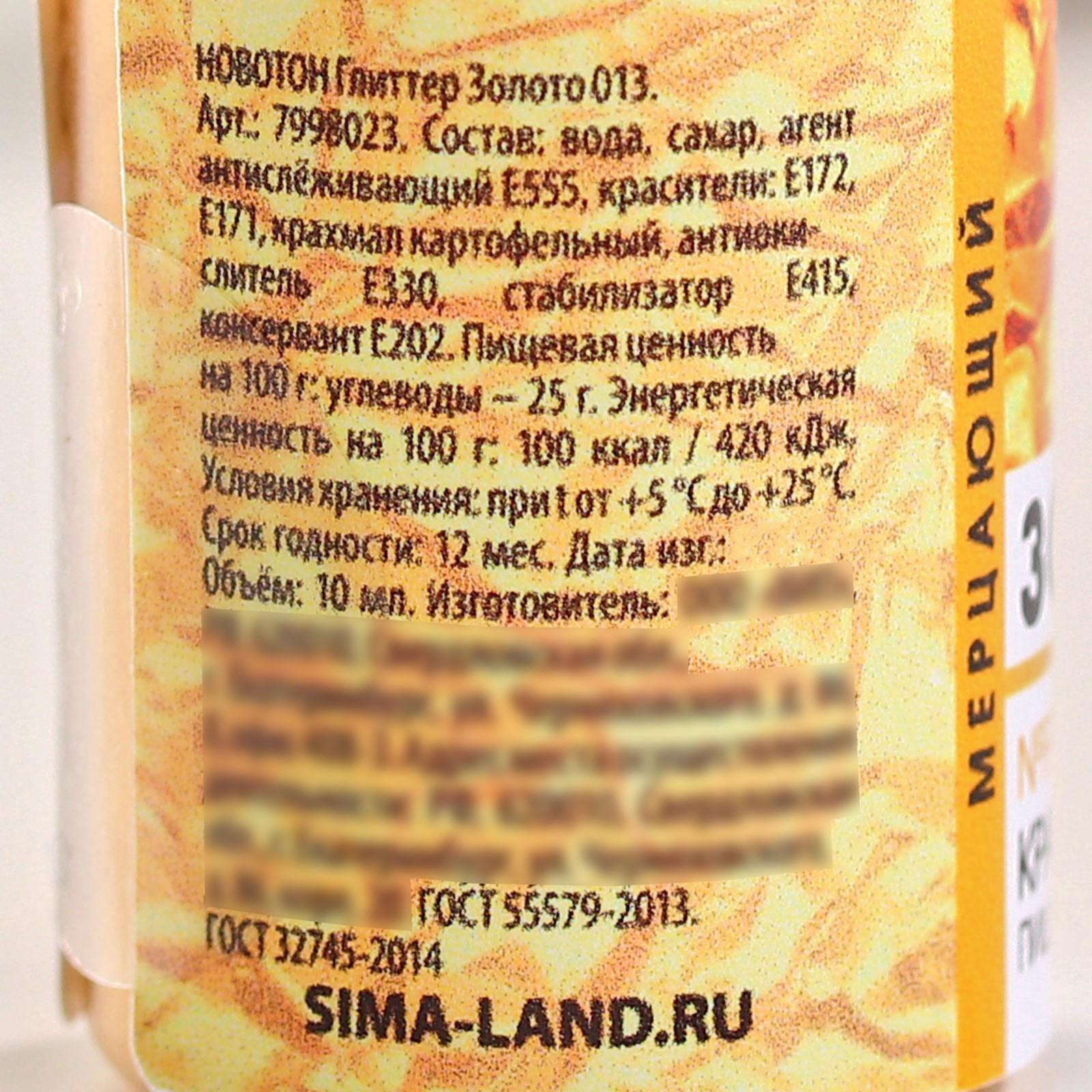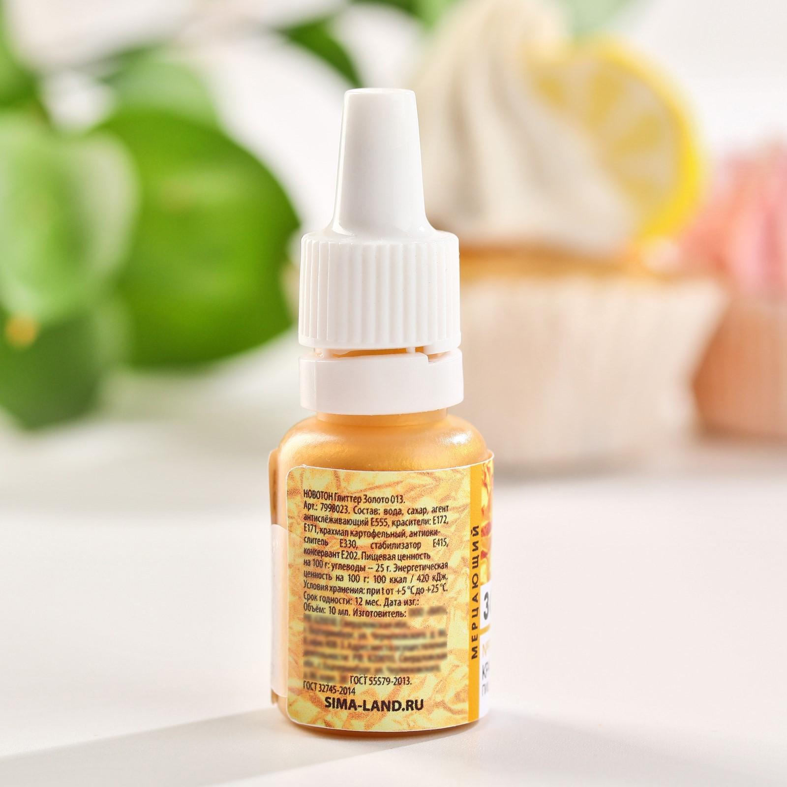 Глиттер пищевой водорастворимый золото, 10 мл.