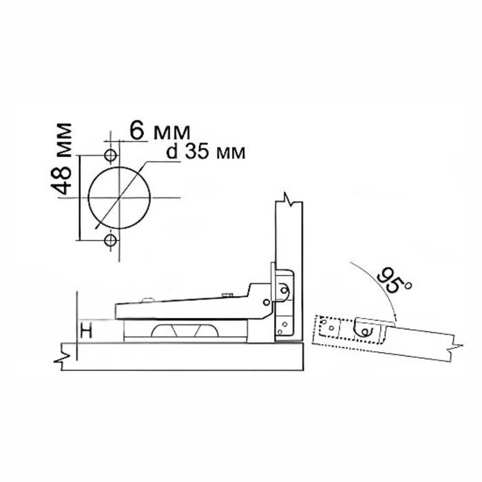 Петля мебельная вкладная, Clip-on, с доводчиком