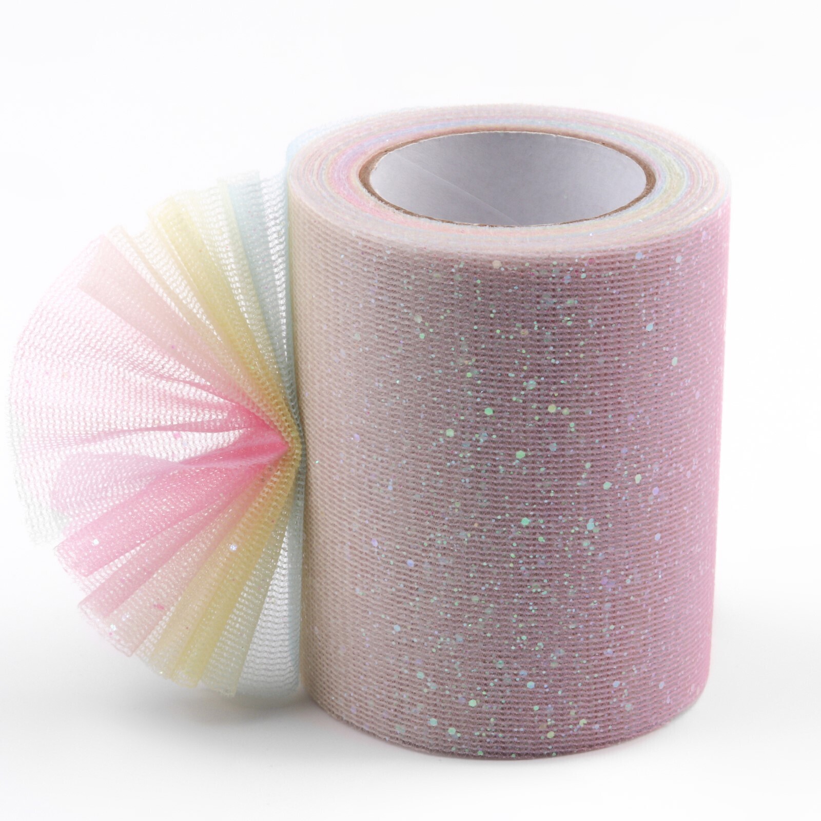 Фатин с глитером «Радуга», 7,5 см, 11 ± 1 г/кв.м, 9 ± 0,5 м, цвет розовый №1