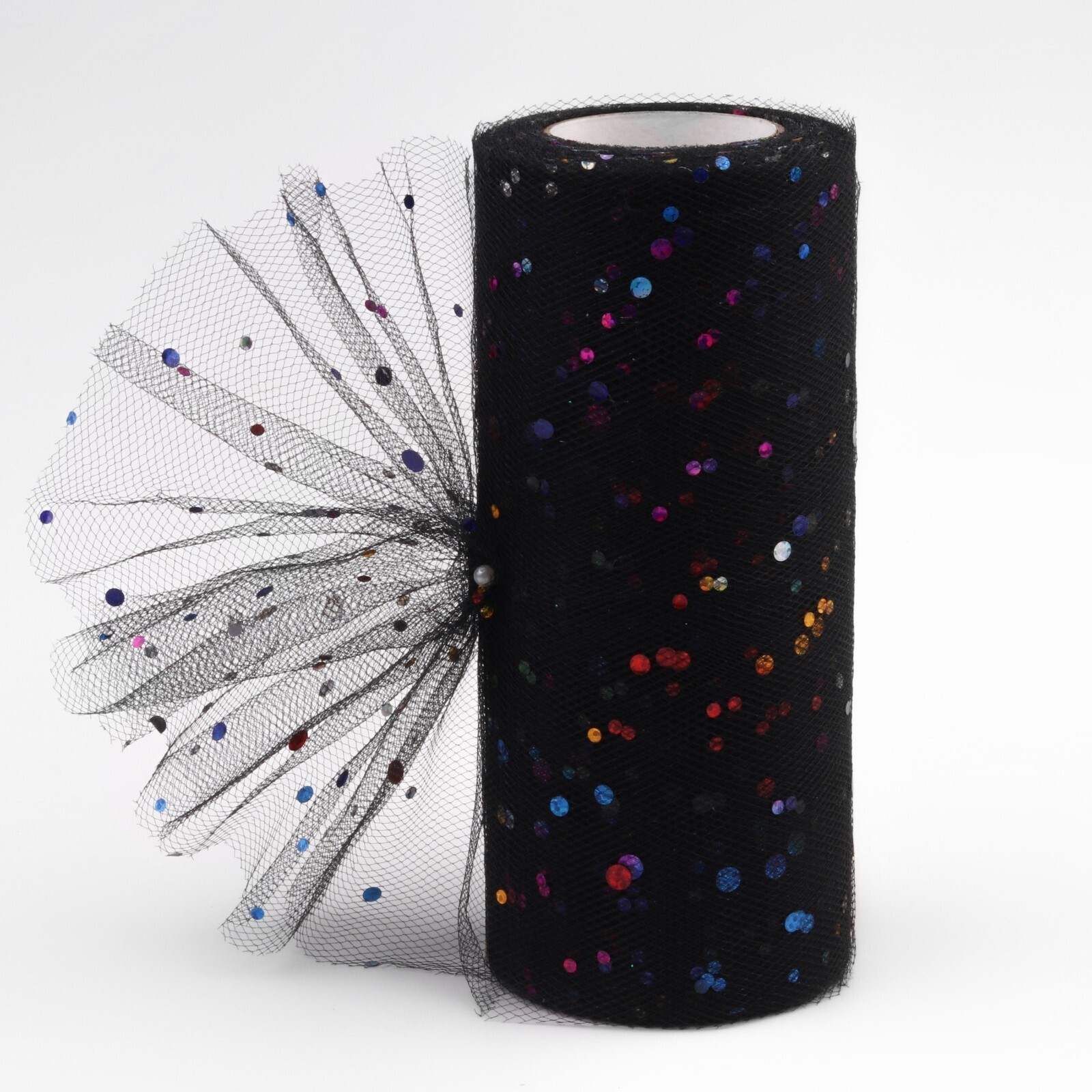 Фатин с разноцветными блёстками, 15 см, 11 ± 1 г/кв.м, 23 ± 1 м, цвет чёрный №40