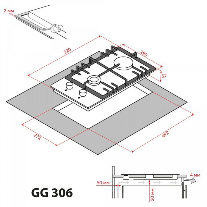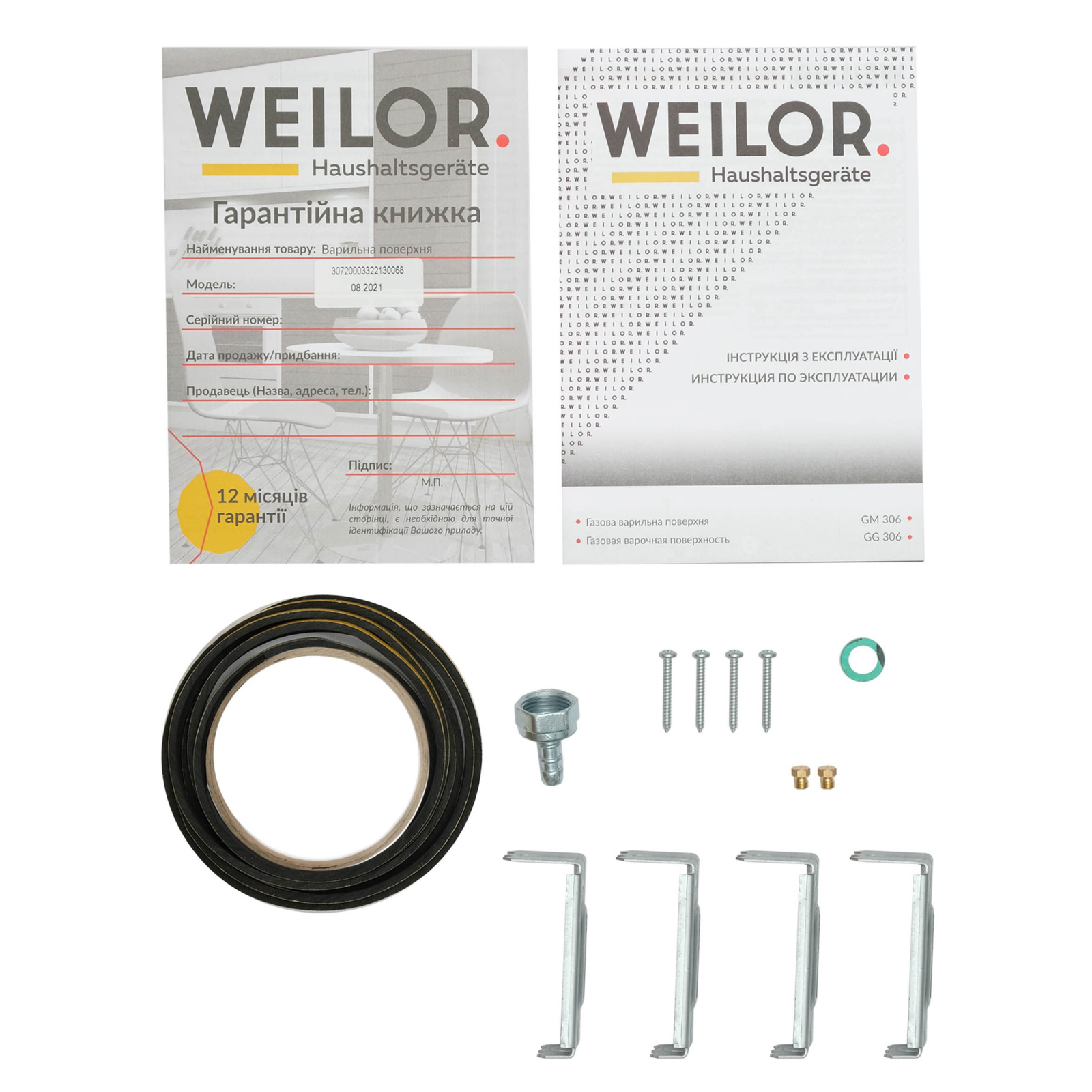 Варильна поверхня WEILOR GM 306 обладнана системою безпеки «газ-контроль», яка автоматично блокує подачу горючої речовини за відсутності полум'я та забезпечує максимальну безпеку користування пристроєм. Ця функція запобігає витоку газу.