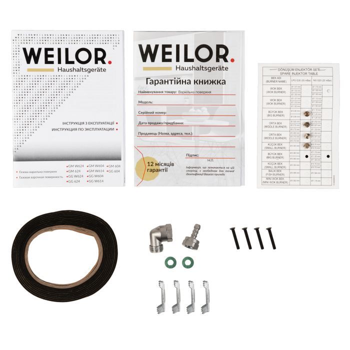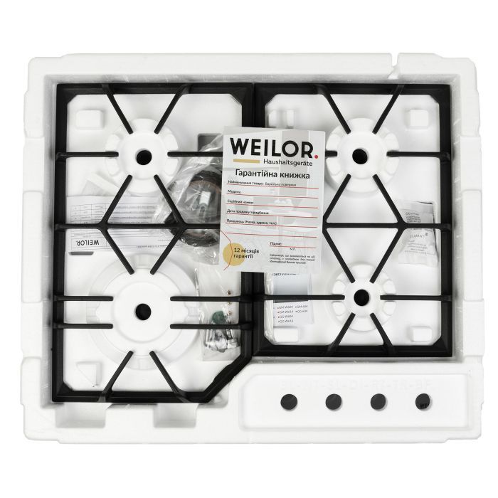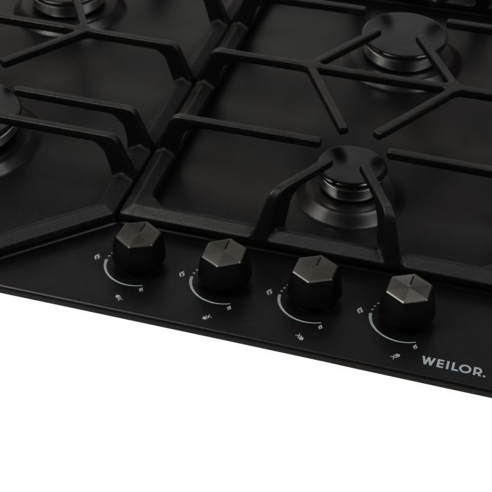 - Варильні поверхні Weilor оснащені системою «газ-контроль», яка автоматично блокує подачу горючої речовини за відсутності полум'я та забезпечує максимальну безпеку використання приладу.
