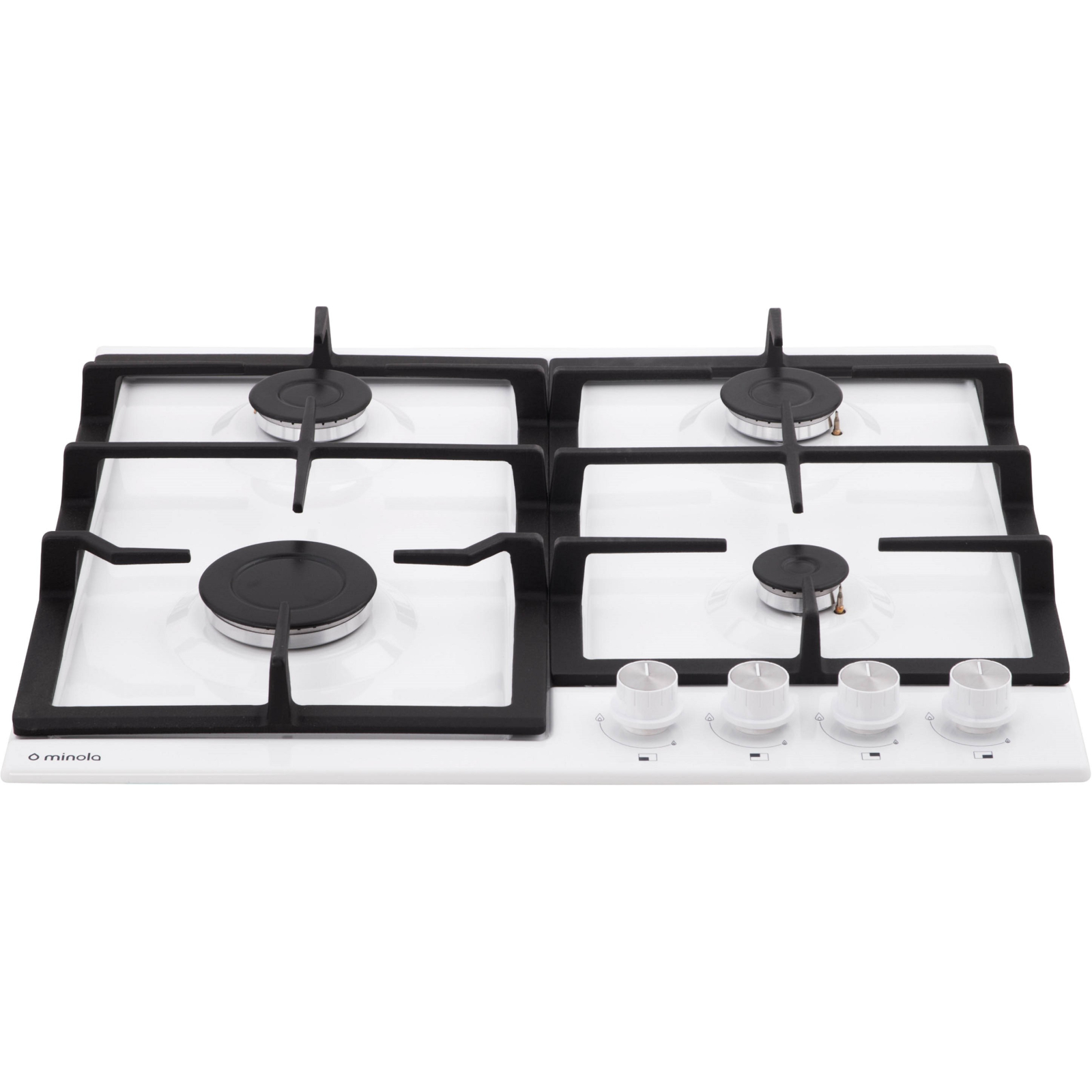 Варильна поверхня обрамлена чіткими рівними лініями двох чавунних решіток. Цей матеріал є довговічним і легко очищається від залишків після приготування їжі. Minola MGM 61426 білого кольору легко вписується в кухонний інтер'єр, доповнюючи його та грамотно розставляючи акценти.'