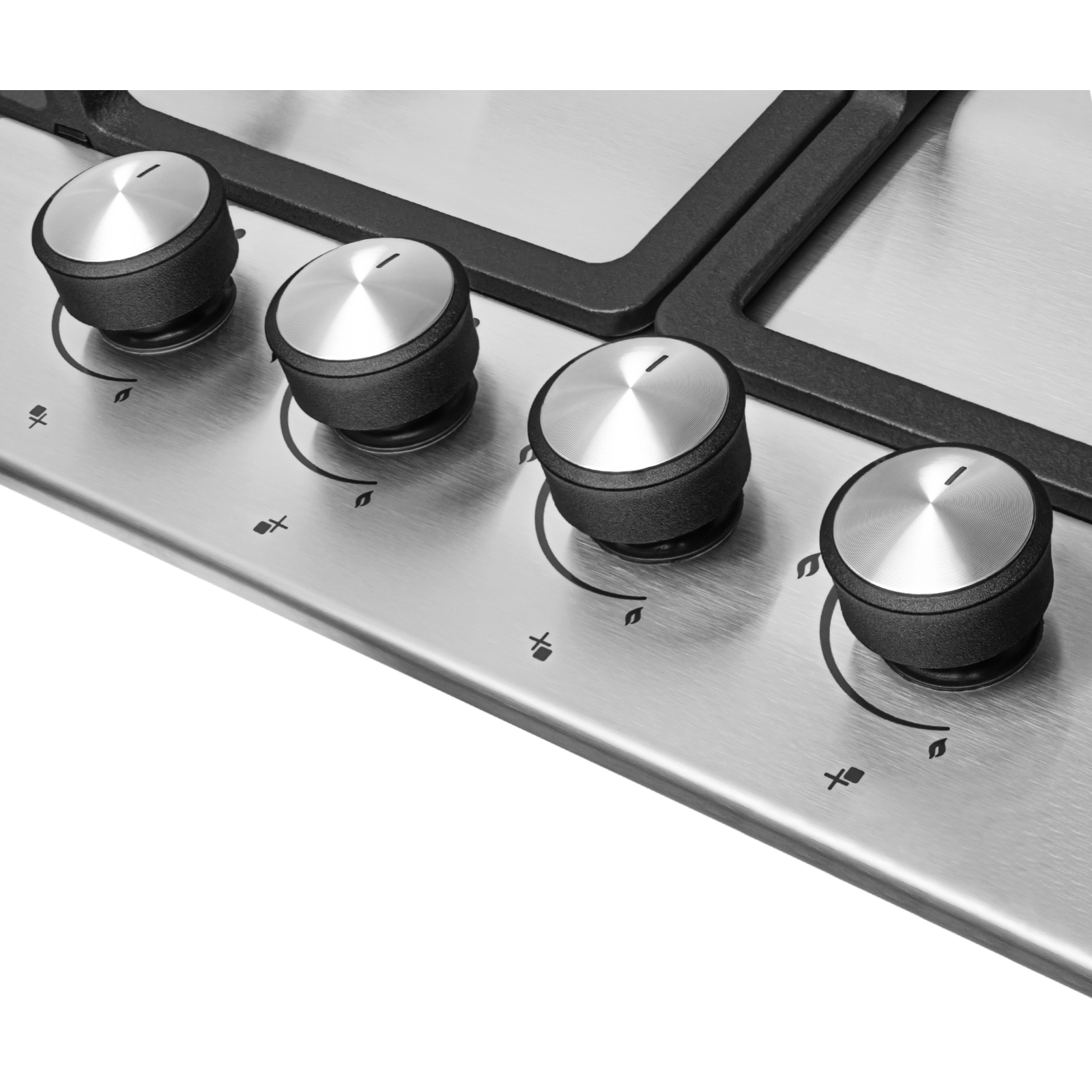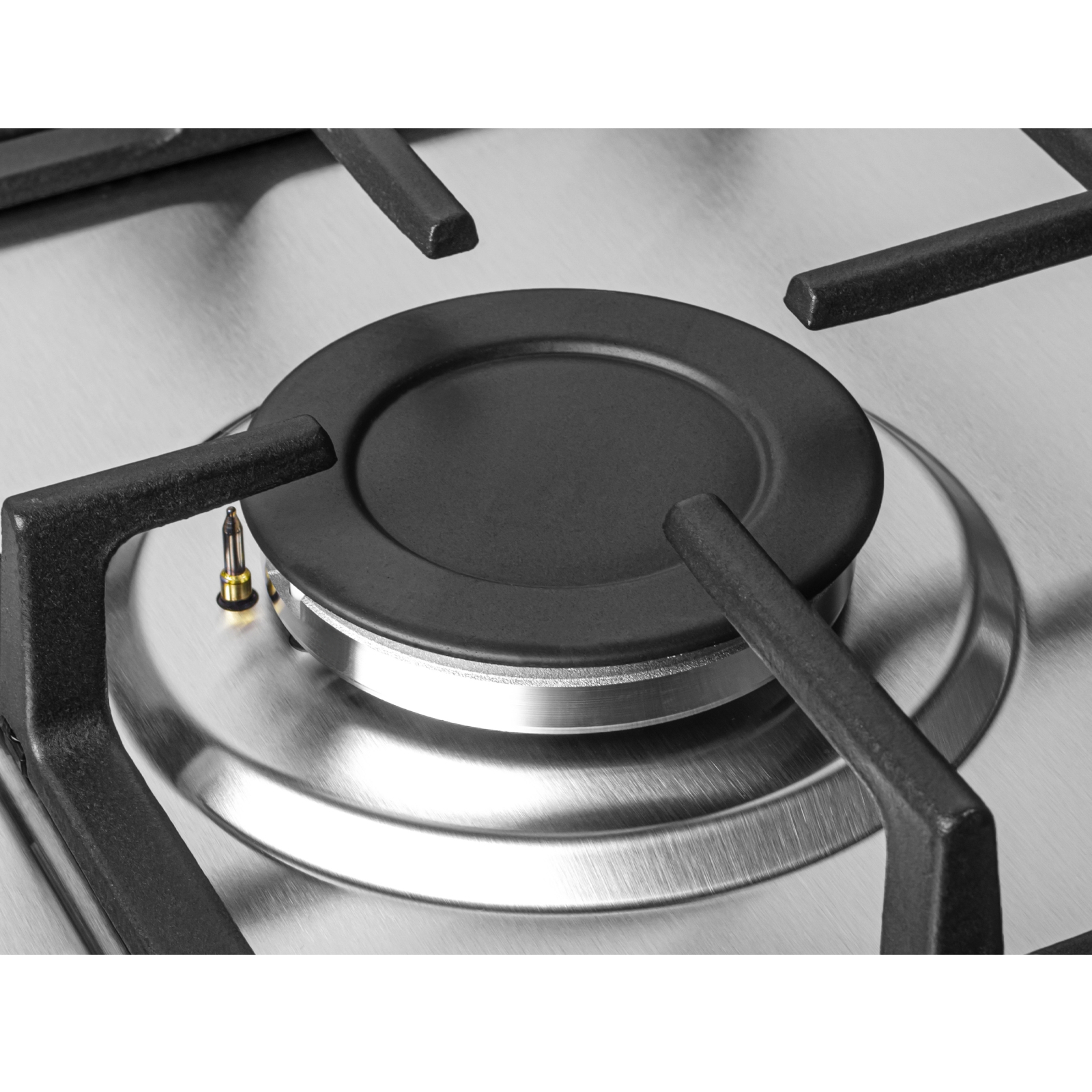 При виборі газової поверхні варто враховувати багато моментів, і один з найважливіших – безпека. Дана модель обладнана функцією «газ-контроль», тож, якщо раптом відбувається згасання полум'я в конфорці, подача газу автоматично припиняється. Ця система безпеки запобігає витоку газу.
