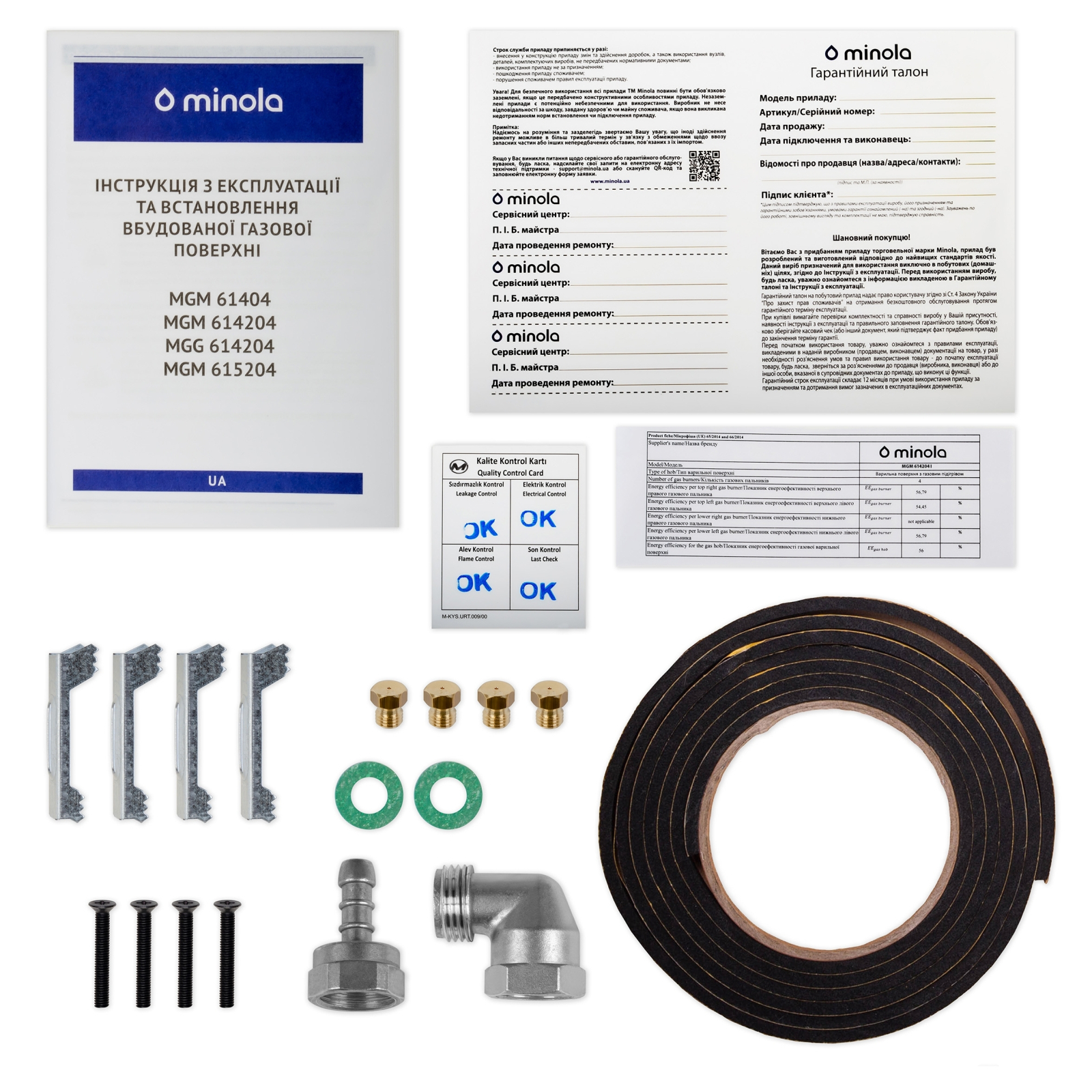 У газовій поверхні на металі Minola MGM 614204 гармонійно поєднані елегантність та практичність. Модель обладнана 4-ма конфорками різної потужності, а її ширина складає 61 см.