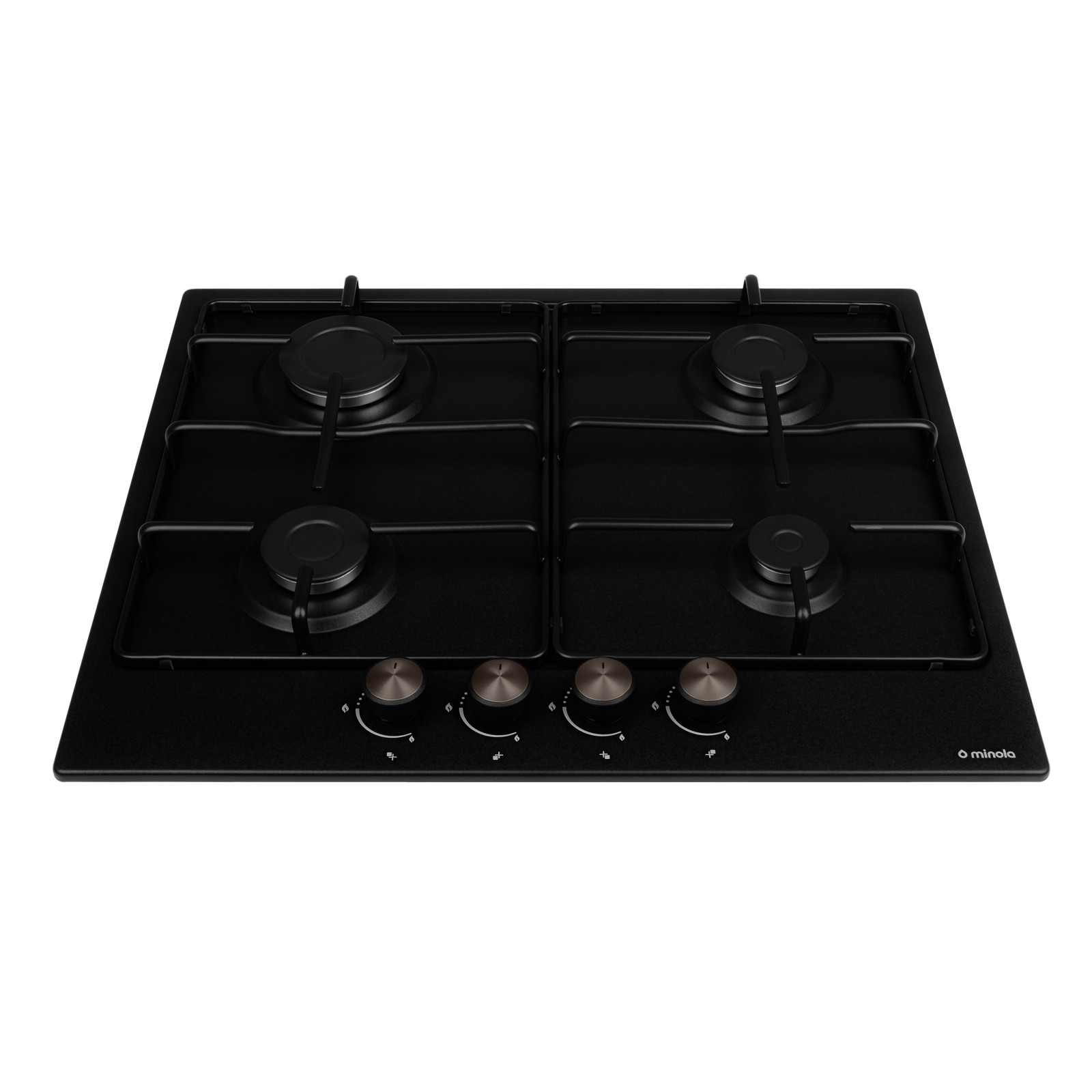 Газова поверхня Minola MGM 61404 BL обрамлена чіткими рівними лініями двох ґрат. Поверхня та решітки виготовлені з емальованого металу високої якості. Цей матеріал є довговічним і легко очищається від залишків після приготування їжі. Модель чорного кольору легко вписується в кухонний інтер'єр, доповнюючи його та грамотно розставляючи акценти.