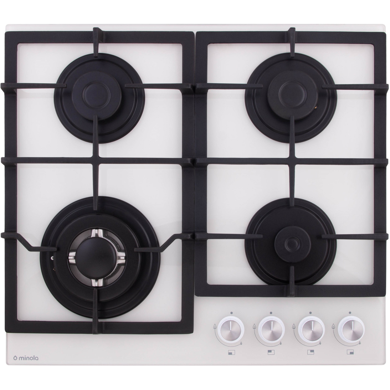 У газовій поверхні на склі Minola MGG 61626 гармонійно поєднуються елегантність та практичність. Модель обладнана чотирма конфорками різної потужності, а її ширина становить 58 см.
