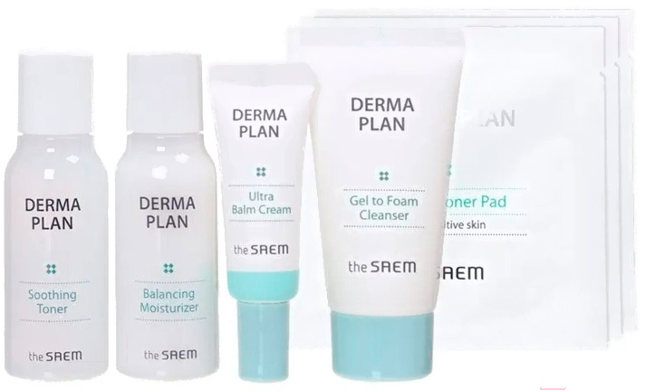 - В наборе крем для лица, тоник для лица, лосьон для лица, пенка для умывания